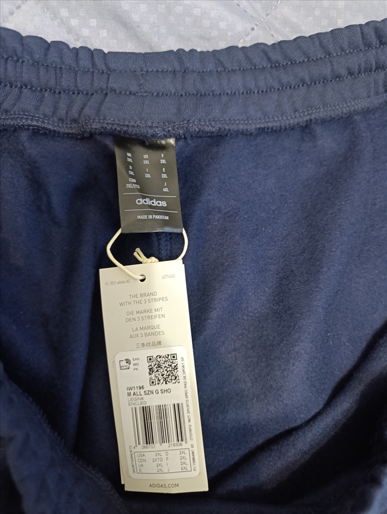 Пристраиваю шорты Адидас. Размер производителя xxl, по факту на пару размеров больше. Цвет темно-синий, плотный трикотаж. Вопросы по товару