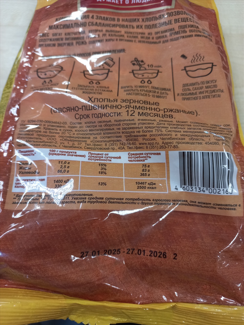 Беру не первый раз, нравится продукция, но в этот раз хлопья сроком до 27.01.2026 г. Лапша по сроку нормально + год.