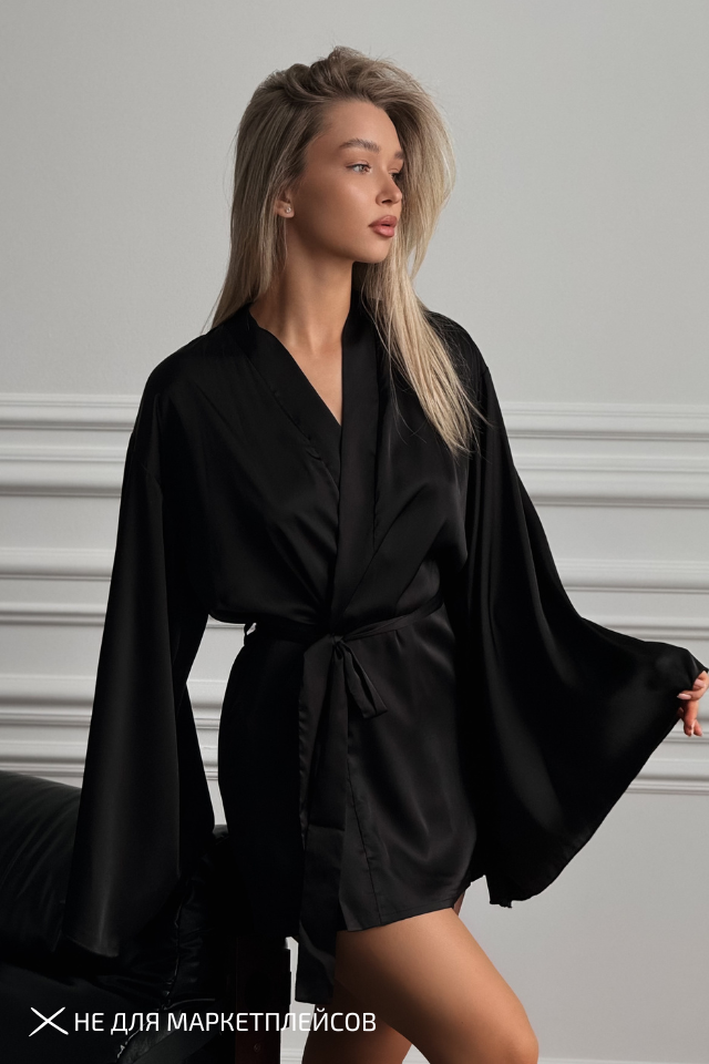Элегантное сочетание роскоши и комфорта. Модель на запах с расклешёнными рукавами создает воздушный силуэт и подчёркивает женственность. Пояс-лента регулирует посадку по талии, обеспечивая свободу движений и деликатное облегание фигуры. Собственное производство. Материал: полиэстер 95%, спандекс 5% Параметры модели: 78-60-90, рост 165 см Размер на модели: S