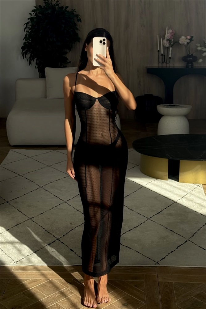 Модель выполнена из мягкой, дышащей сетки с деликатным точечным узором, который подчёркивает силуэт и создаёт утончённый, женственный образ. Формованные чашечки обеспечивают аккуратную посадку и комфорт в носке.
