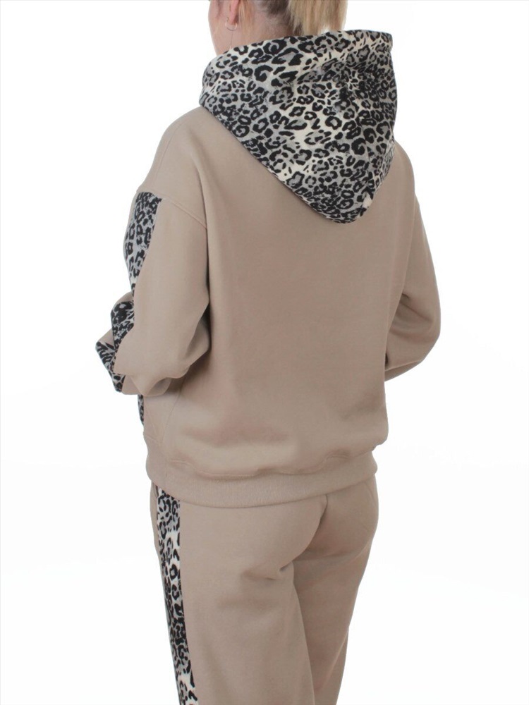 Кол-во в упаковке: 1 Костюм спортивный зимний женский (95% хлопок, 5% полиэстер) Модель сезона: осень - зима. Артикул: 008 BEIGE/LEOPARD Дополнительная информация: Ткань плотная - флис. Толстовка: Несъемный двухслойный капюшон с регулировочным шнурком. На рукавах и по низу трикотажные манжеты. Карман - кенгуру. Брюки: Два кармана спереди. Пояс на резинке с регулировочным шнурком, ширина 5 см. Штаны прямого покроя. Фото сделано на модели размера 44/46 Рост модели 175 см., объем груди 90, талия 72, бедра 96. Витринный образец размера M - 44/46 российский: Толстовка: Длина спины: 59 см. Объем груди: 118 см. Объем талии: 110 см. Длина плеча до линии рукава: 21 см. Длина рукава от линии плеча 55 см. Брюки: Объем талии 70 см. (тянется) Объем бедер 114 см. Объем колена 56 см. Объем по нижней части штанины 56 см. Длина внешней части штанины (замеры из под пояса) 102 см. Длина внутренней части штанины 76 см. Посадка (с поясом) 33 см. Состав ткани: 95% хлопок, 5% полиэстер. Размер указанный на спортивном костюме и соответствие российским стандартам: M - 44/46 российский L - 46/48 российский XL - 48/50 российский Комментарии к товару