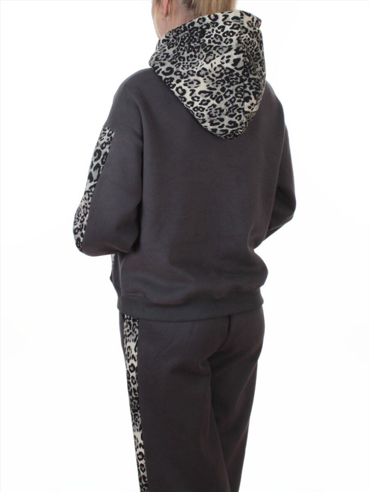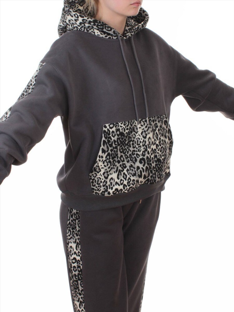 Кол-во в упаковке: 1 Костюм спортивный зимний женский (95% хлопок, 5% полиэстер) Модель сезона: осень - зима. Артикул: 008 DK. GRAY/LEOPARD Дополнительная информация: Ткань плотная - флис. Толстовка: Несъемный двухслойный капюшон с регулировочным шнурком. На рукавах и по низу трикотажные манжеты. Карман - кенгуру. Брюки: Два кармана спереди. Пояс на резинке с регулировочным шнурком, ширина 5 см. Штаны прямого покроя. Фото сделано на модели размера 44/46 Рост модели 175 см., объем груди 90, талия 72, бедра 96. Витринный образец размера M - 44/46 российский: Толстовка: Длина спины: 59 см. Объем груди: 118 см. Объем талии: 110 см. Длина плеча до линии рукава: 21 см. Длина рукава от линии плеча 55 см. Брюки: Объем талии 70 см. (тянется) Объем бедер 114 см. Объем колена 56 см. Объем по нижней части штанины 56 см. Длина внешней части штанины (замеры из под пояса) 102 см. Длина внутренней части штанины 76 см. Посадка (с поясом) 33 см. Состав ткани: 95% хлопок, 5% полиэстер. Размер указанный на спортивном костюме и соответствие российским стандартам: M - 44/46 российский L - 46/48 российский XL - 48/50 российский Комментарии к товару