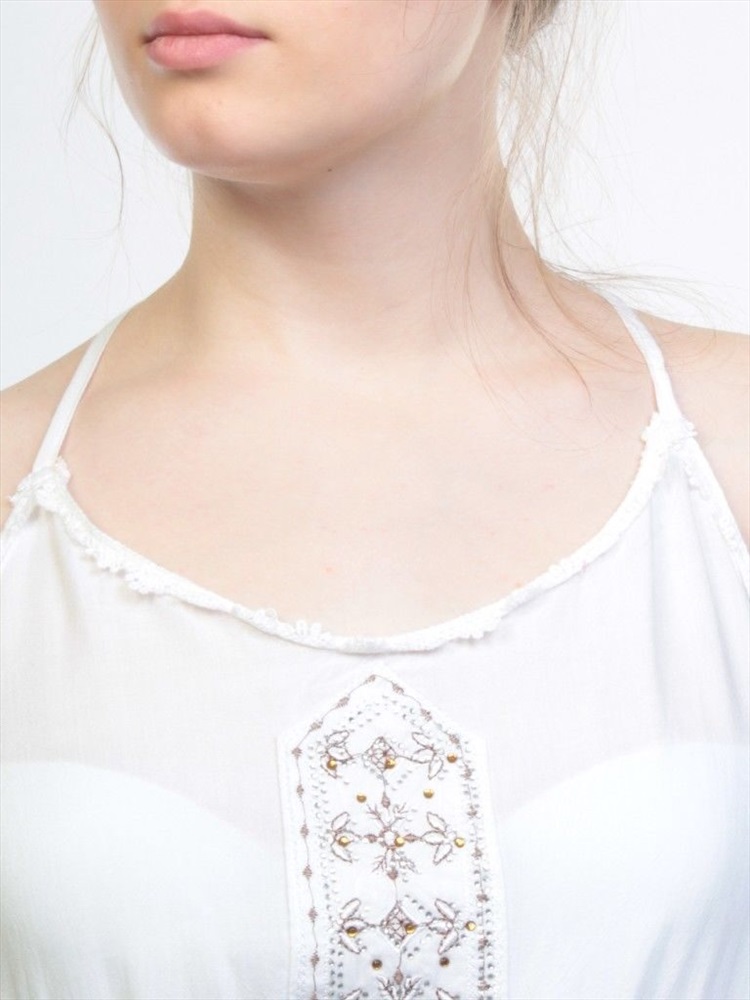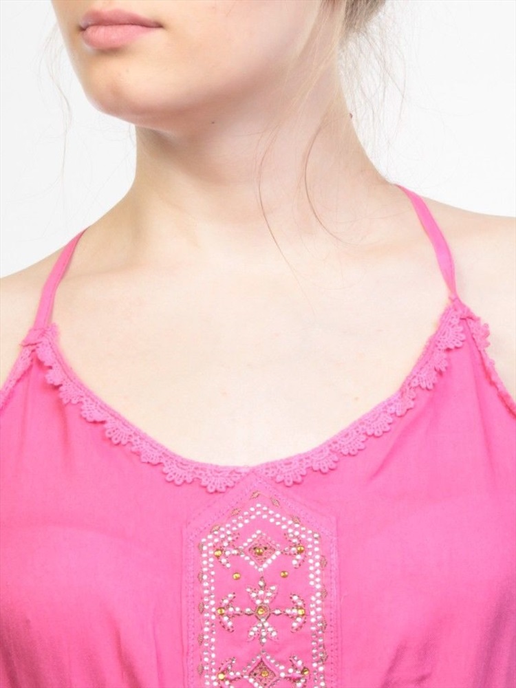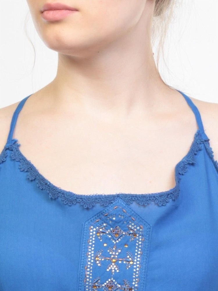 Кол-во в упаковке: 1 Туника женская (65% хлопок, 35% полиэстер) Этим летом ни один модный гардероб не обходится без вещей с открытыми плечами. Изящная туника выполнена из мягкого фактурного хлопка. Спереди симпатичная вышивка в тон. Свободный силуэт с легкой сборкой на талии красиво обыгрывает фигуру. Модель без рукавов на тонких бретельках. Смешанная хлопковая ткань с полиэстером обеспечивает хорошую посадку по фигуре и комфорт в носке. Для спортивного образа блузку можно носить с любыми джинсами, а для делового с классическим костюмом с брюками или юбкой. Фото сделано на модели размера 44 Рост модели 167 см., объем груди 90, талия 72, бедра 98. Витринный образец размера L (42 российский) Длина спины: 66 см. Ширина спины: 44 см. Состав: 65% хлопок, 35% полиэстер. Размеры указанные на изделии и соответствие российским стандартам: L - 42 российский XL - 44 российский 2XL - 46 российский Оптовый интернет магазин одежды Optrf.ru Комментарии к товару