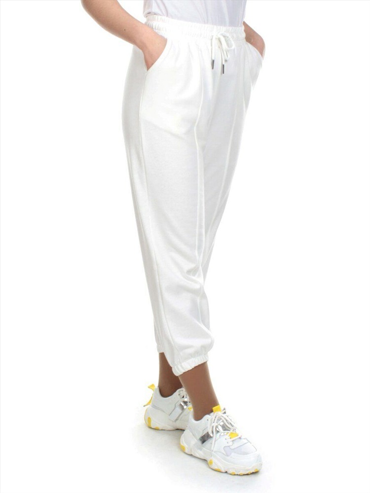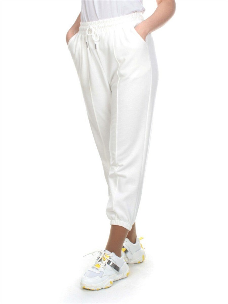 Кол-во в упаковке: 1 Брюки спортивные женские Артикул: 0801 WHITE Модель сезона: весна-осень. Дополнительная информация: Модель на резинке, регулируется шнурком. Два кармана спереди. Фото сделано на модели размера 44/46 Рост модели 170 см., объем груди 90, талия 70, бедра 95. Витринный образец размера L - 44 российский Объем талии 68 см на резинке Длина штанины по внутреннему шву 58 см. Длина штанины по внешнему шву 88 см. Ширина штанины по низу 26 см. Высота посадки спереди 28 см. Размеры указанные на изделии и соответствие российским стандартам: M - 42 российский L - 44 российский XL - 46 российский 2XL - 48 российский Комментарии к товару