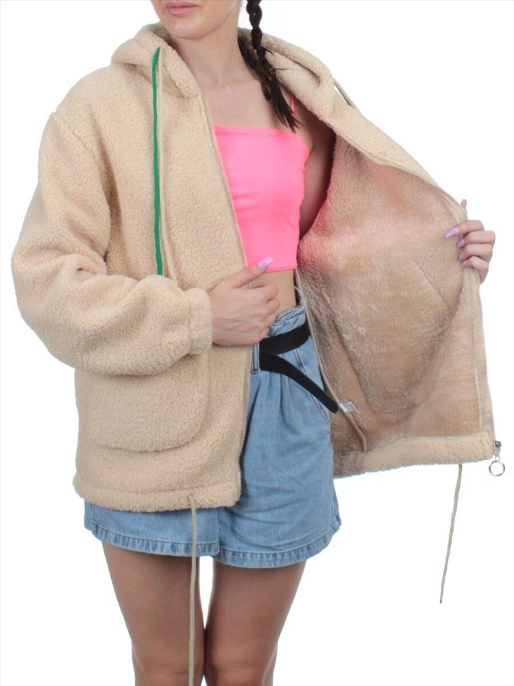 1003 BEIGE Куртка плюшевая демисезонная (65% хлопок, 35% полиэстер) оверсайз 44-54