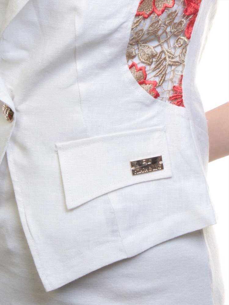 Кол-во в упаковке: 1 Пиджак женский (100% лен) Артикул: 104 Модель сезона: весна-лето. Отличный пиджак, выполненный из качественного материала. Модель с застежкой на пуговицу снабжена короткими рукавами. Изделие с костюмным воротником оформлено декоративными вставками по бокам и сзади. Этот пиджак абсолютно точно сможет придать уверенность, подчеркнет фигуру и создаст имидж неподражаемо стильной особы. Фото сделано на модели размера 44 Рост модели 167 см., объем груди 90, талия 70, бедра 95. Витринный образец размера 38 (44 российский) Длина спины: 48 см. Ширина спины: 44 см. Длина плеча: 10 см. Длина рукава: 10 см. Размеры указанные на изделии и соответствие российским стандартам: 36 - 42 российский 38 - 44 российский 40 - 46 российский 42 - 48 российский Комментарии к товару