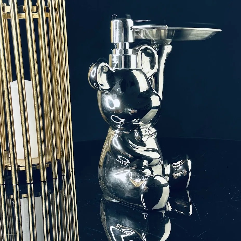 Упаковано в подарочную коробку Диспенсер для мыла с подставкой для украшений, губок для мытья посуды и прочих мелочей. Диспенсер изготовлен из фарфора, покрытого зеркальной эмалью. Подставка выполнена из нержавеющей стали. Можно использовать на кухне, ванной комнате. Материал: фарфор От загрязнений очищать в теплой воде с помощью мягкой губки с жидким средством.