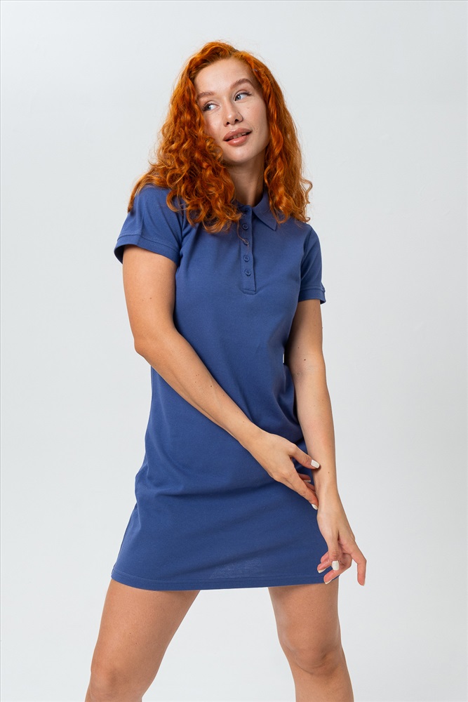 Застежка: пуговицы Отличный вариант для жаркого лета - модное платье-поло. Платье имеет отложной ворот и короткий рукав. Кроме того, вверху имеются акцентные пуговицы в цвет платья. Комфортная длина чуть выше колена и прямой крой делает это платье универсальным. Стильное и модное платье подойдет женщинам и девушкам разных возрастов. Хлопок обладает свойствами воздухопроницаемости, что так необходимо в жаркую весеннюю или летнюю погоду. Это изделие прекрасно сочетается как со спортивной обувью, так с классическими туфлями и балетками. На более прохладную погоду можно создавать многослойные образы, сочетая платья с другой одеждой. Это отличный вариант на повседневную основу на работу в офис, прогулки или учебу. Благодаря достаточному свободному не обтягивающему прилеганию в области талии оно является максимально удобным и комфортным. Плотность 190гр/куб.м.