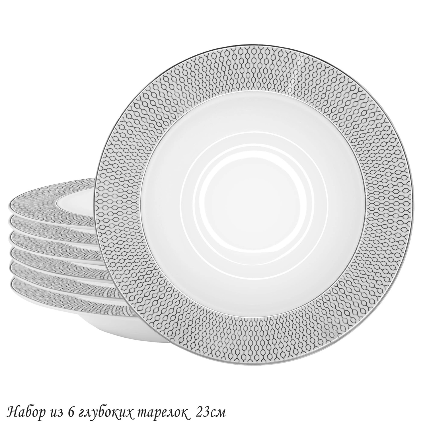 Набор из 6 глубоких тарелок 23см СЕВИЛЬЯ СЕРЕБРО в под.уп.