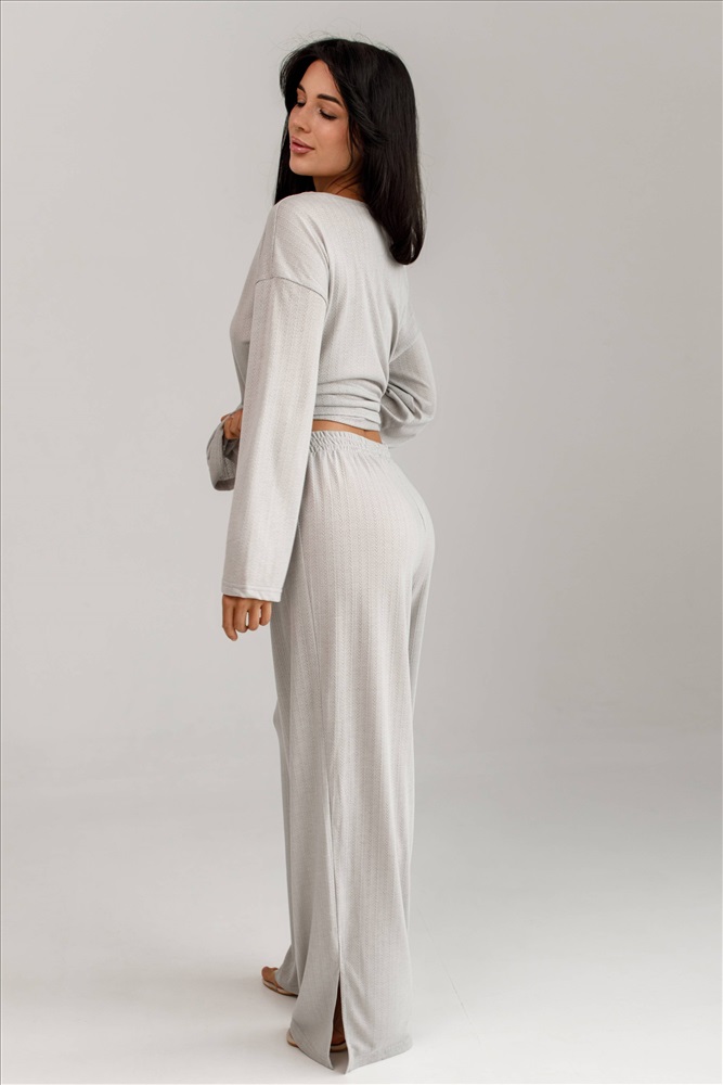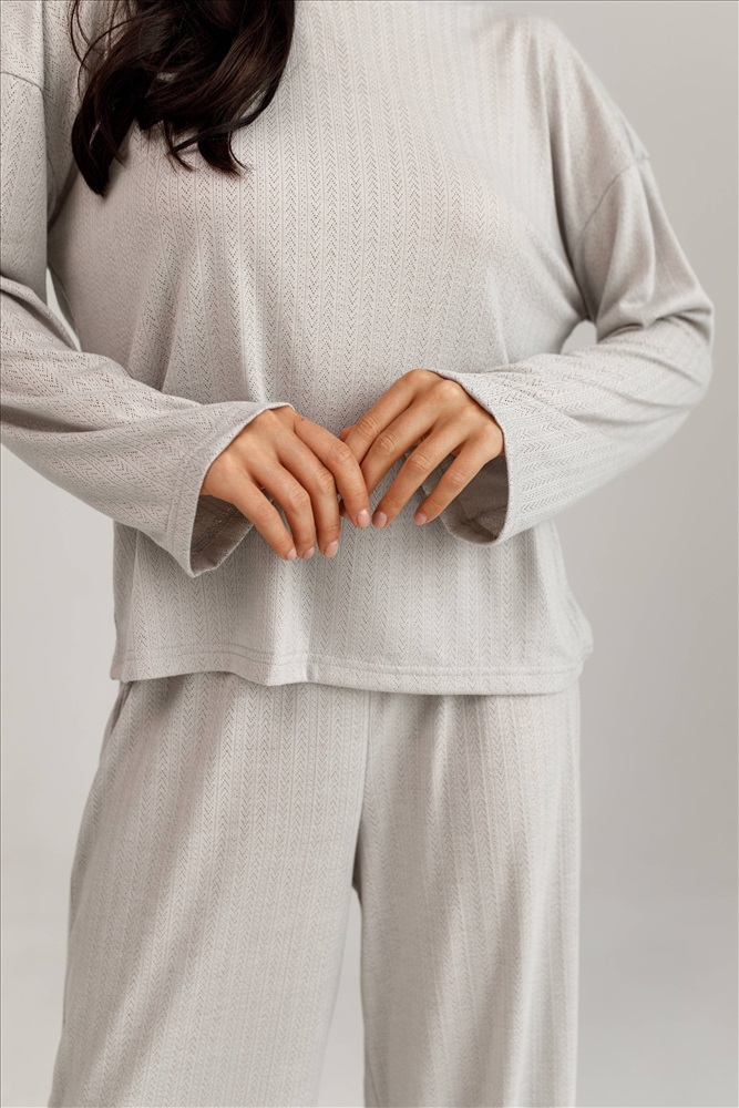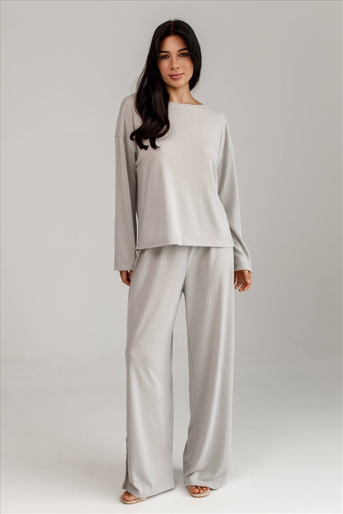 Топ с неглубоким круглым вырезом и длинным рукавом обеспечивает удобство и свободу движений. Длинные брюки с разрезами по бокам обеспечивают комфортную посадку. Комплект сочетает в себе комфорт и практичность, и станет отличным дополнением к вашему гардеробу. Параметры модели: 87-60-92, рост 165 см Размер на модели: S Состав ткани: 60% полиэстер, 40% вискоза