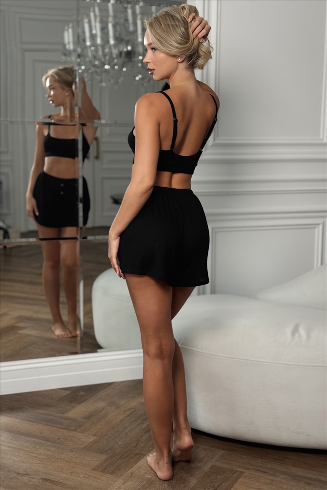 Пижама с шортами — воплощение лёгкости и комфорта. Модель выполнена из мягкой дышащей ткани, майка на тонких бретелях изящно подчёркивает плечи, а шорты с удобной посадкой на резинке не сковывают движений. Идеальна для сна и домашнего отдыха в тёплое время года.