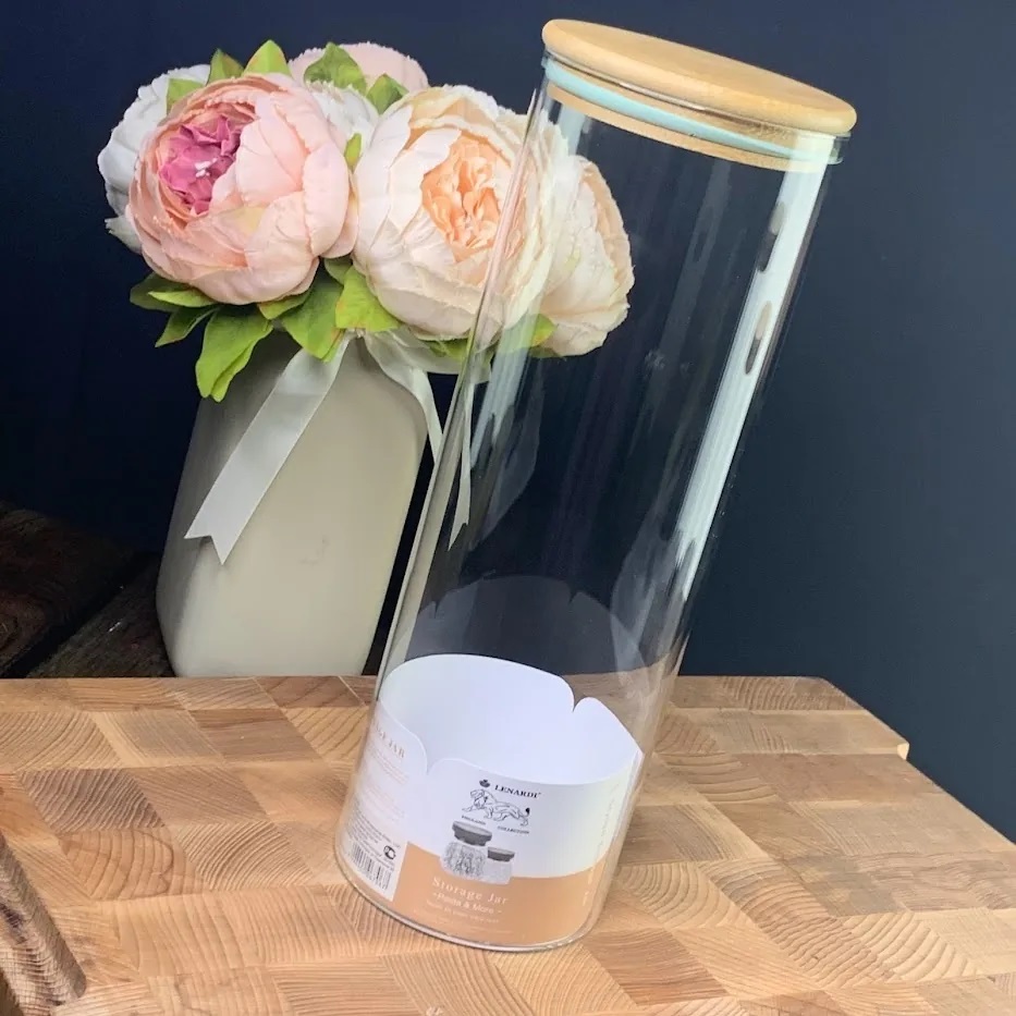 Баночка хранения спегетти, специй, сахара, кофе изготовлена из стекла, крышка из бамбука с силиконовым уплотнителем, объем 2300 мл.