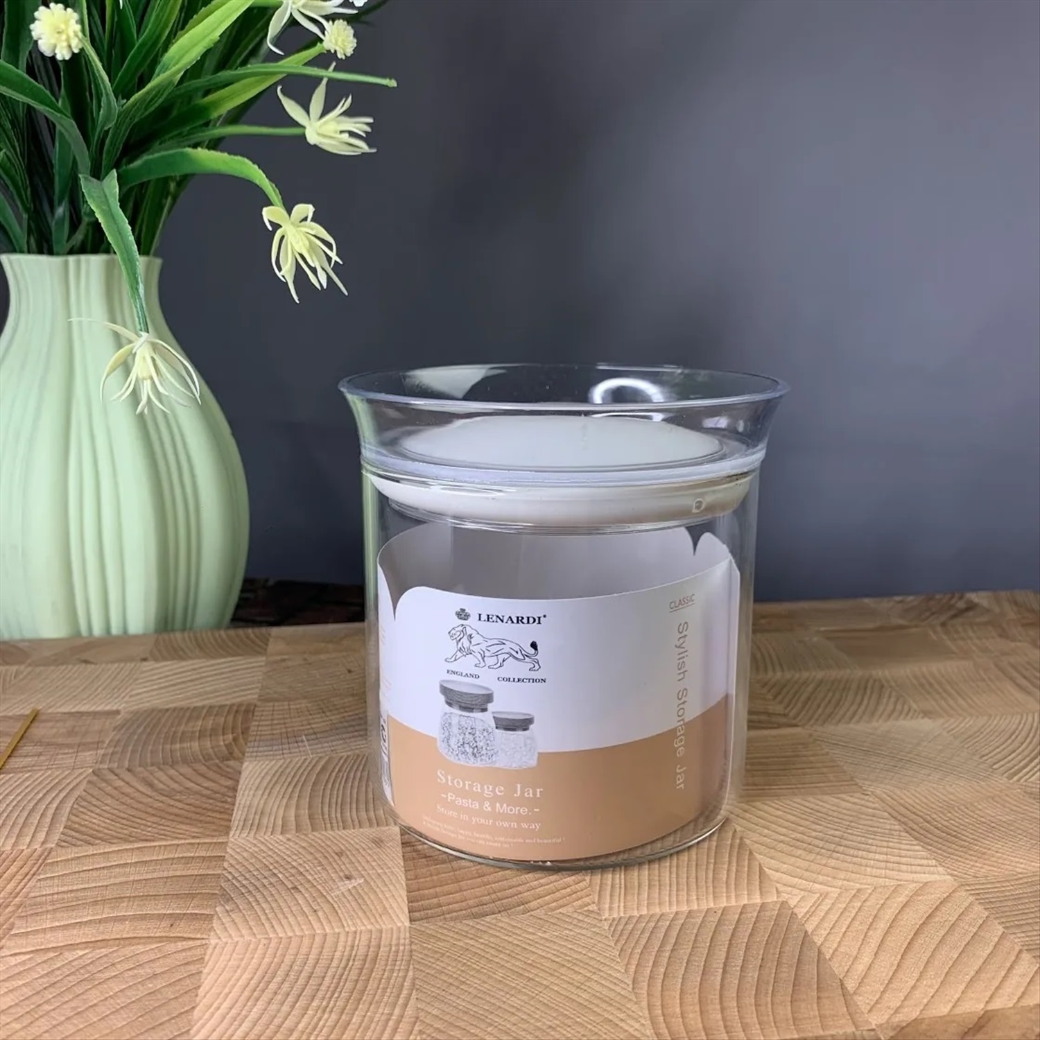 Баночка хранения специй, сахара, кофе изготовлена из стекла, крышка из пластика с цветной вставкой и силиконовым уплотнителем, объем 650 мл.