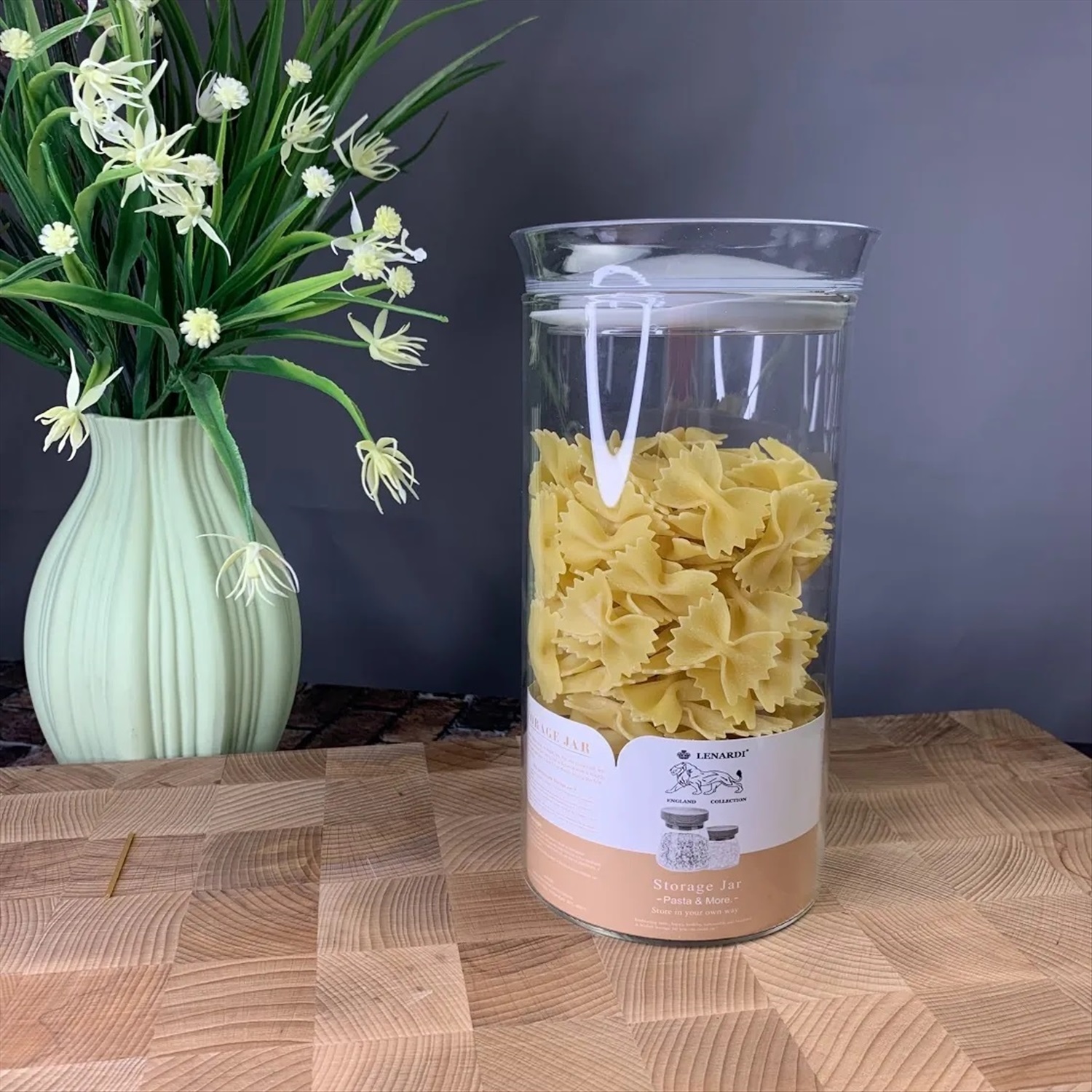 Баночка хранения специй, сахара, кофе изготовлена из стекла, крышка из пластика с цветной вставкой и силиконовым уплотнителем, объем 1300 мл.