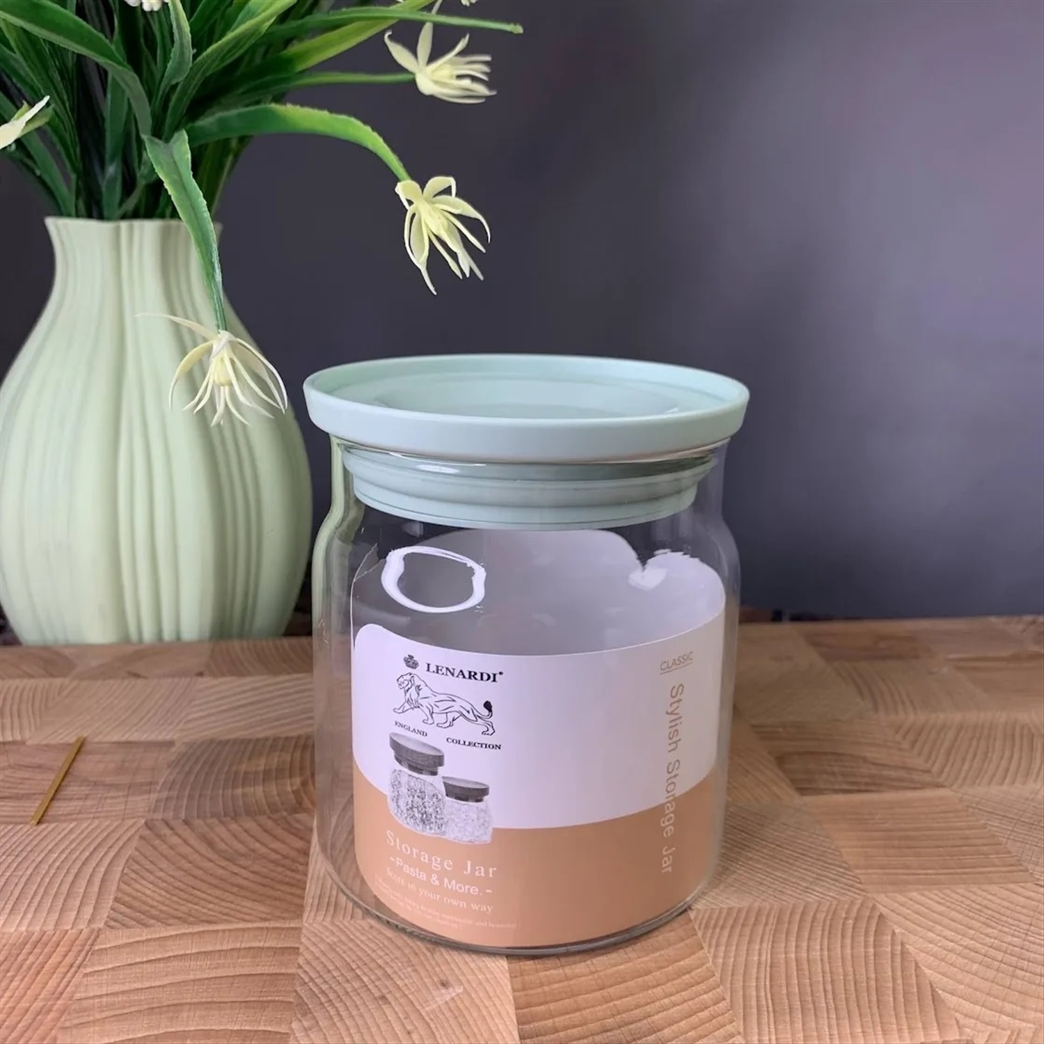 Баночка хранения специй, сахара, кофе изготовлена из стекла, крышка из цыетного пластика с силиконовым уплотнителем, объем 600 мл.