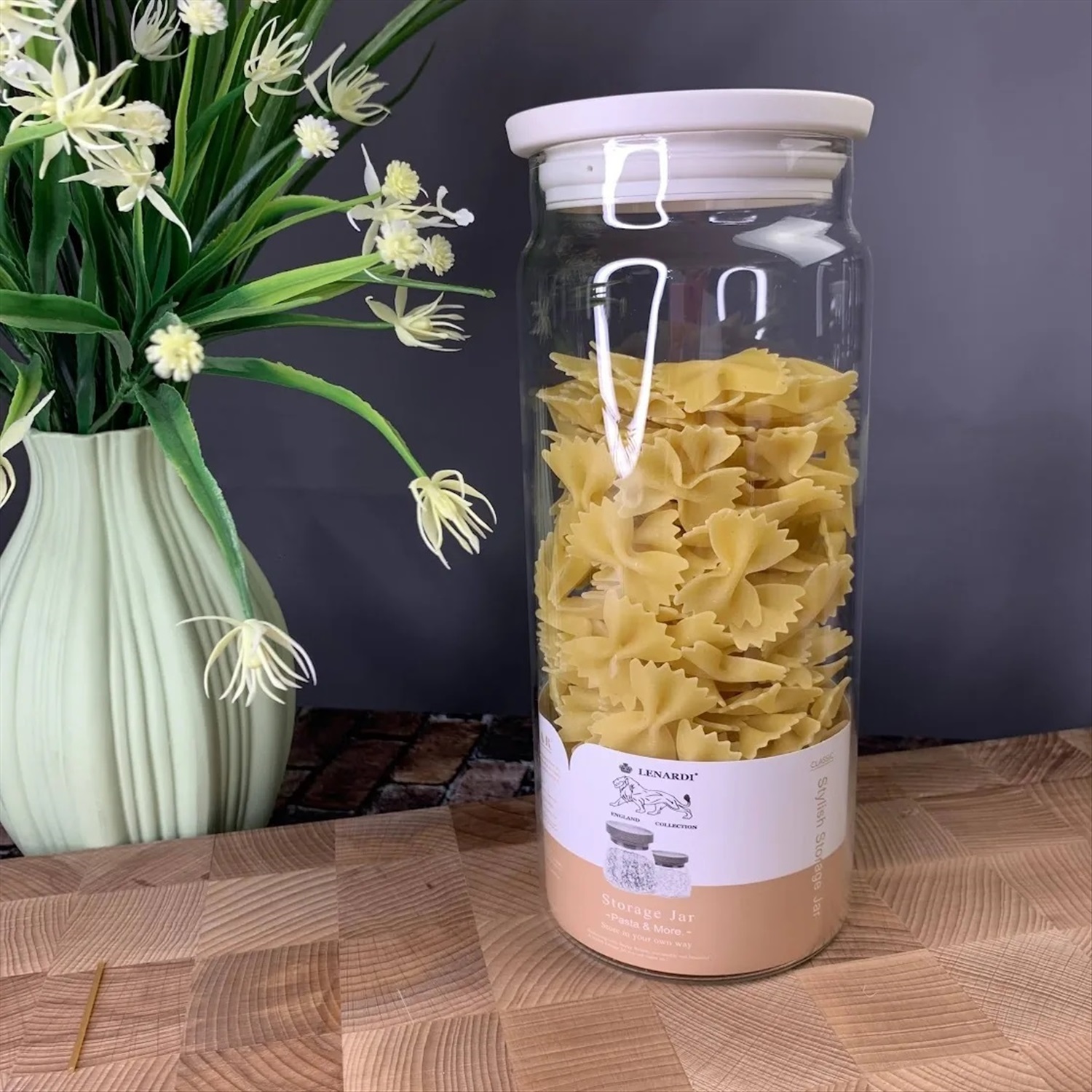 Баночка хранения специй, сахара, кофе изготовлена из стекла, крышка из цыетного пластика с силиконовым уплотнителем, объем 1400 мл.