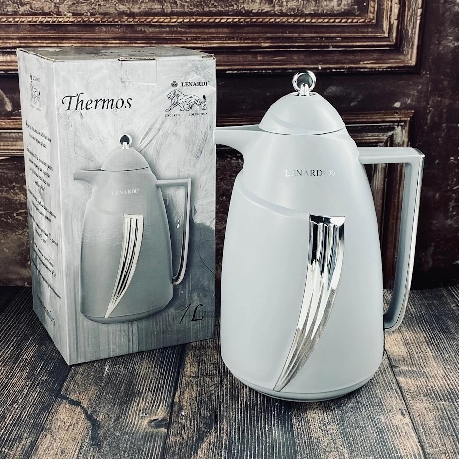 Термос изготовлен из пластика со стеклянной колбой и выполнен в стильной форме кувшина. Размер 27х14,5 см