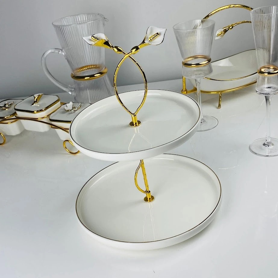 163-031 Двухъярусная этажерка MELODY в под.уп.(х12)Фарфор, металл