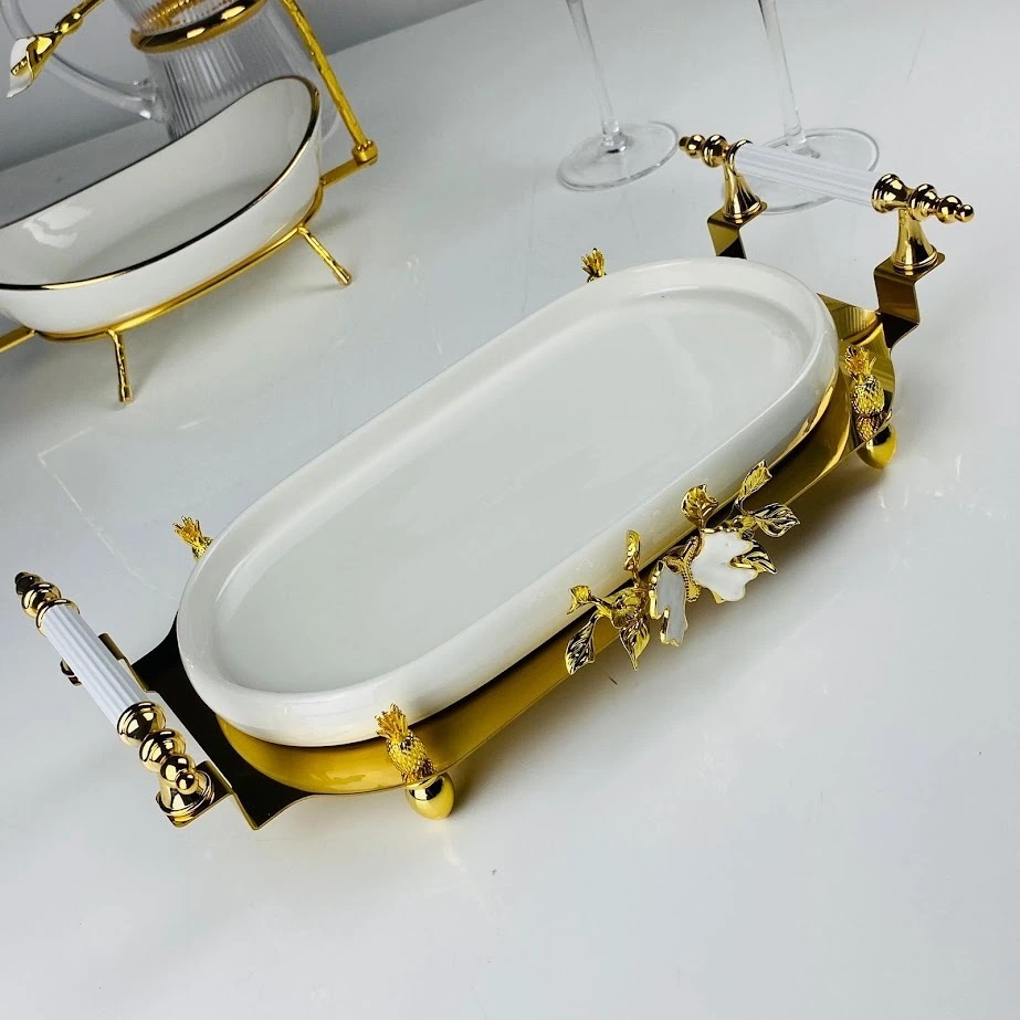 163-041 Овальное блюдо 28см на подставке MELODY в под.уп.(х12)Фарфор, металл