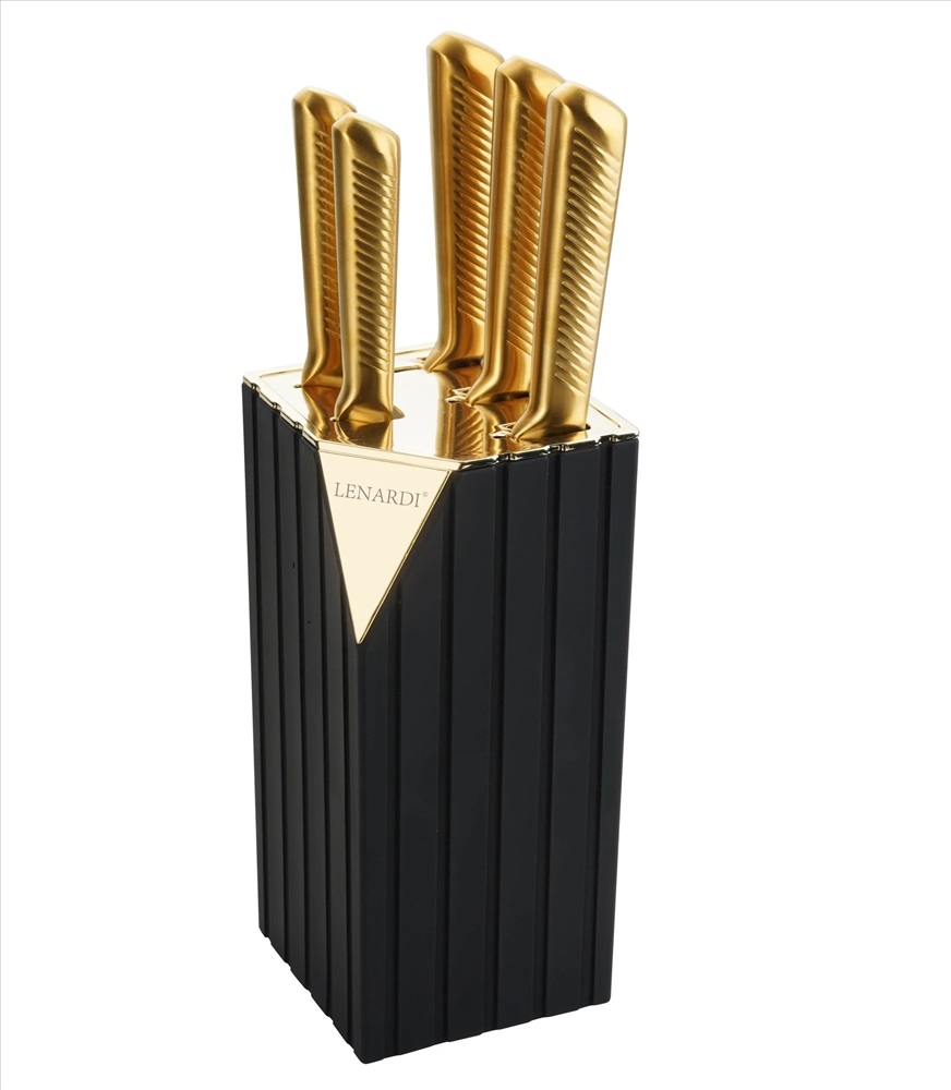 Набор ножей на подставке. Ножи изготовлены из нержавеющей стали, подставка из пластика. Наполнение: - нож поварской 20см
