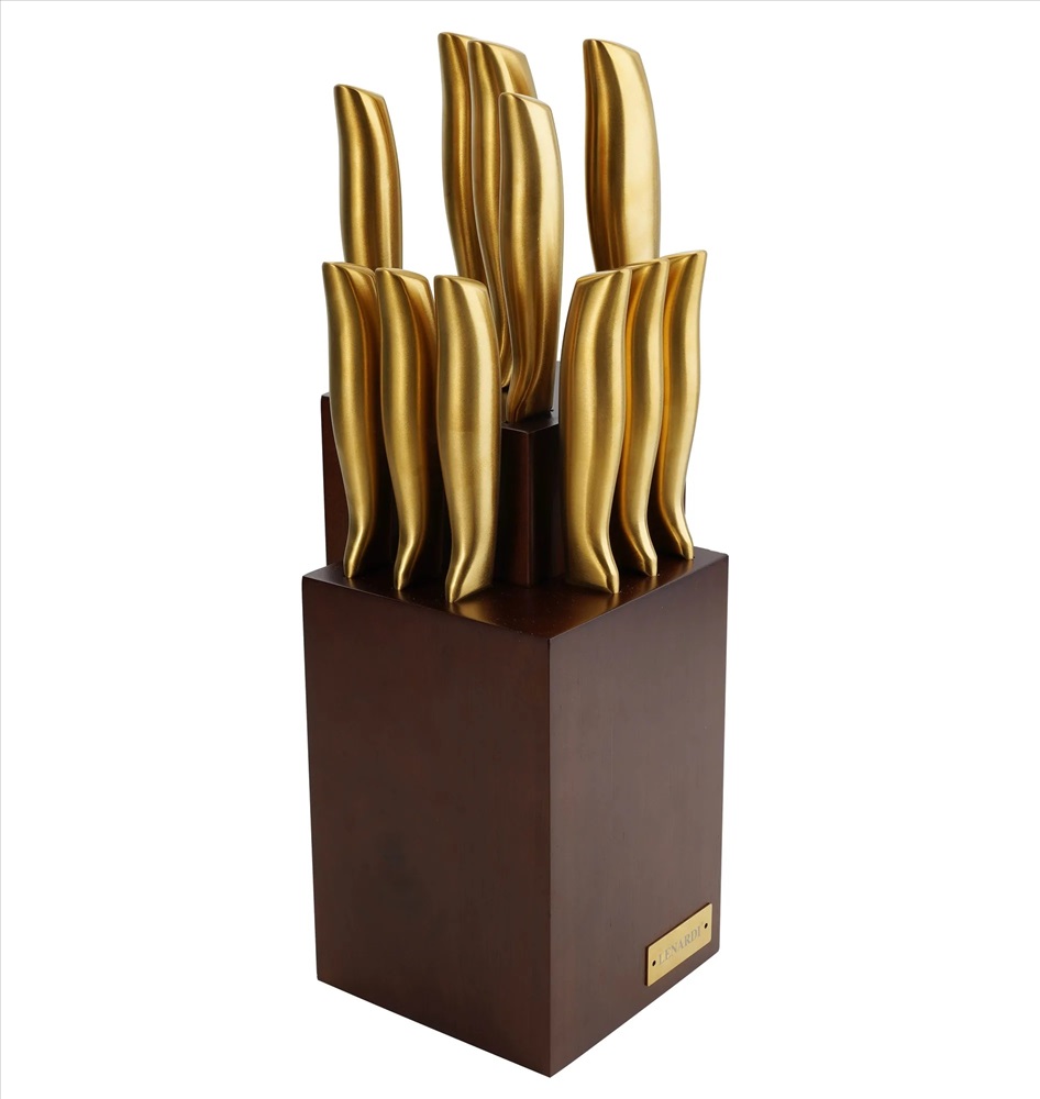 Набор ножей на подставке. Ножи изготовлены из нержавеющей стали, подставка из пластика. Наполнение: - нож поварской 20см