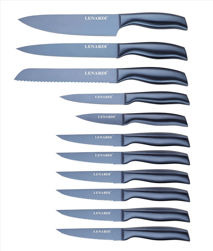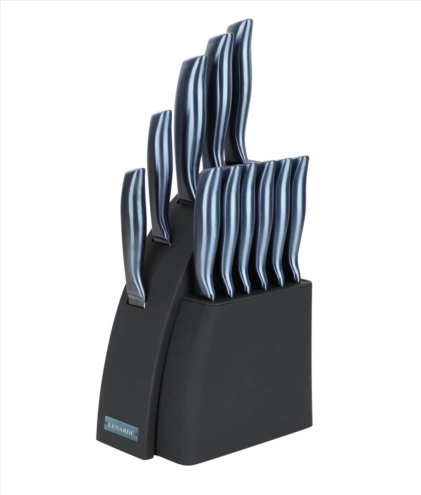 Набор ножей на подставке. Ножи изготовлены из нержавеющей стали, подставка из пластика. Наполнение: - нож поварской 20см