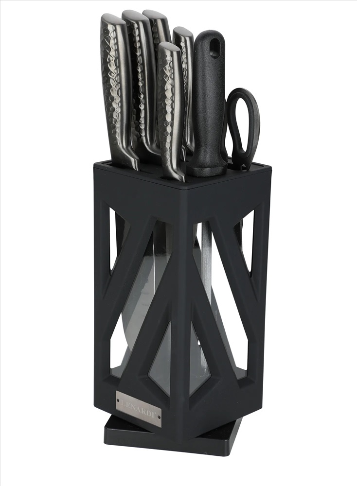 Набор ножей на подставке. Ножи изготовлены из нержавеющей стали, подставка из пластика. Наполнение: - нож поварской 20см