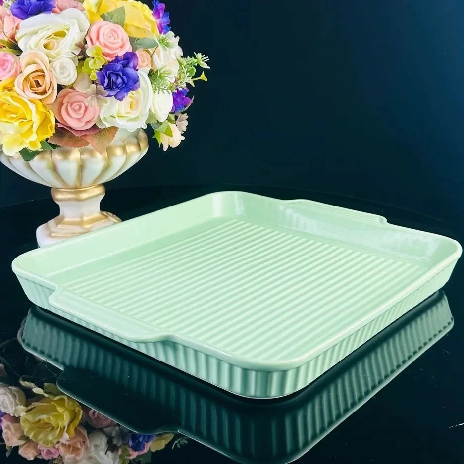 Жаропрочный фарфор - серия представлена в виде прямоугольных, квадратных, овальных и круглых блюд разного объема, круглых кастрюль и порционных формочек. Посуду можно использовать в духовке и микроволновой печи. Пища при этом сохраняет естественный вкус и аромат. Посуду можно мыть в посудомоечной машине, а качественная и прочная глазурь защищает блюда от царапин ножа и вилки. ВНИМАНИЕ! Температура приготовления пищи в посуде из фарфора не должна превышать t220C градусов. Категорически запрещается ставить посуду на конфорки электрической плиты или на открытое пламя. Посуду, в которой находились замороженные или охлажденные продукты, не следует сразу из холодильника помещать в горячую духовку.