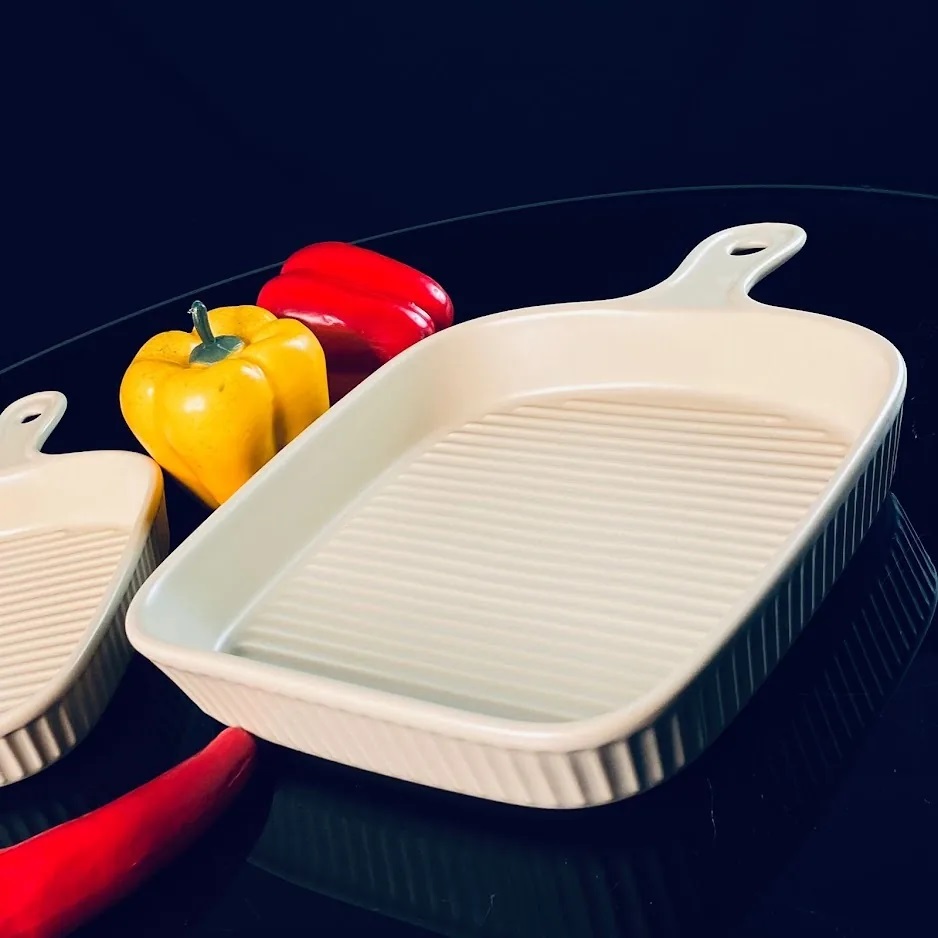 Жаропрочный фарфор - серия представлена в виде прямоугольных, квадратных, овальных и круглых блюд разного объема, круглых кастрюль и порционных формочек. Посуду можно использовать в духовке и микроволновой печи. Пища при этом сохраняет естественный вкус и аромат. Посуду можно мыть в посудомоечной машине, а качественная и прочная глазурь защищает блюда от царапин ножа и вилки. ВНИМАНИЕ! Температура приготовления пищи в посуде из фарфора не должна превышать t220C градусов. Категорически запрещается ставить посуду на конфорки электрической плиты или на открытое пламя. Посуду, в которой находились замороженные или охлажденные продукты, не следует сразу из холодильника помещать в горячую духовку.
