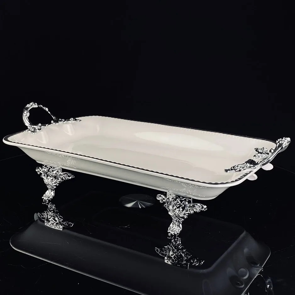 Коллекция посуды ATLANTIS изготовлена из фарфора, с рельефным краем и серебряной окантовкой. Изящные ручки и ножки изготовлены из облегчённого метала с качественным серебряным покрытием. Упаковано в подарочную коробку Материал: фарфор Не рекомендуется использовать в микроволновой печи и мыть в посудомоечной машине, по причине возможного повреждения декоративного покрытия.