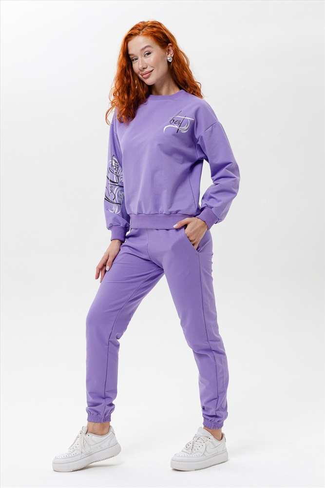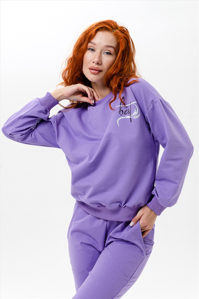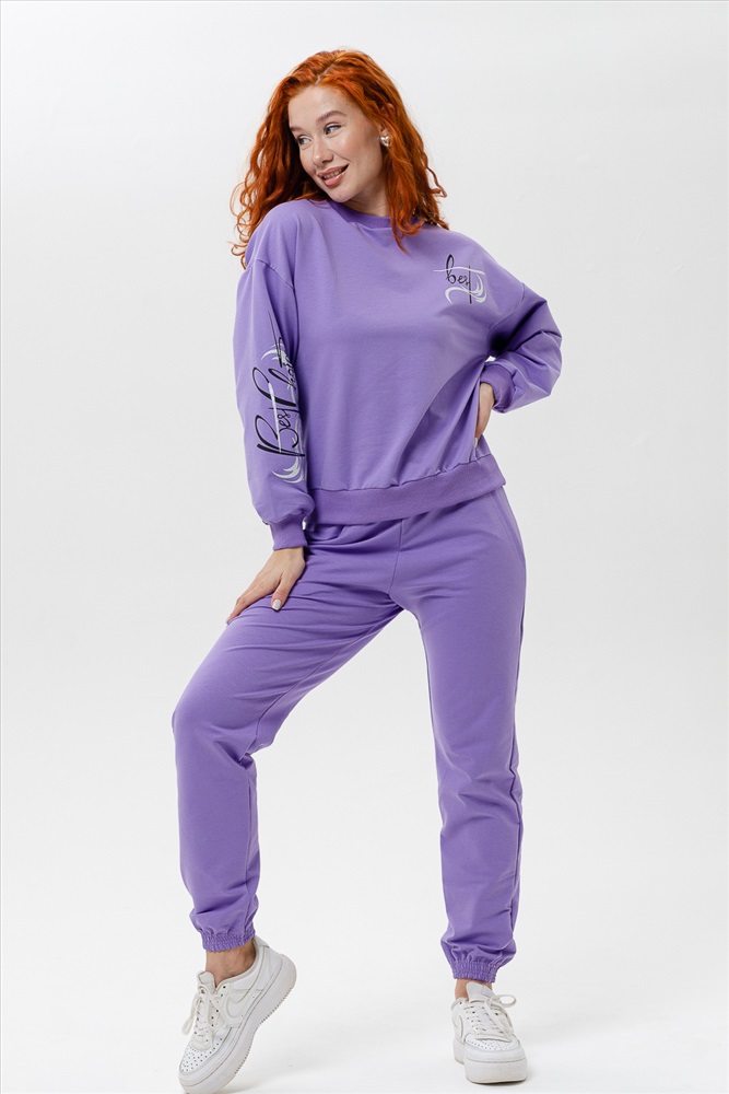 Костюм женский из футера с лайкрой без начёса. Он объединяет в себе два важных качеста-комфорт и красоту, к которым женщины стремятся в повседневном образе. Свободные брюки на резинке, с боковыми карманами. Толстовка свободного кроя обработана резинкой кашкорсе. Костюм для активного отдыха, спорта, поездок и путешествий. Оригинальный принт с надписью Лучший выбор.