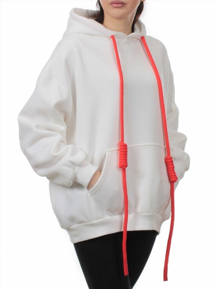 Толстовка женскаяАртикул: 2226Дополнительная информация: Трикотажные манжеты на рукавах и по низу худи Капюшон несъемный Регулировочные шнурки на капюшоне