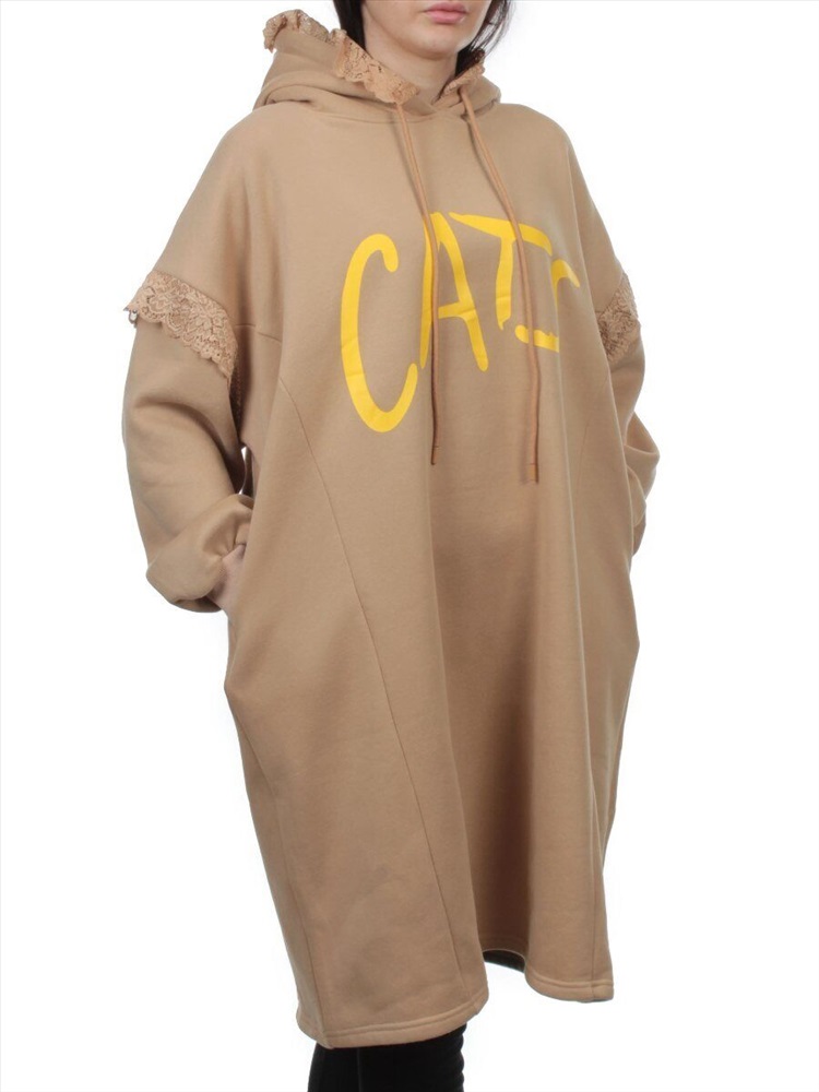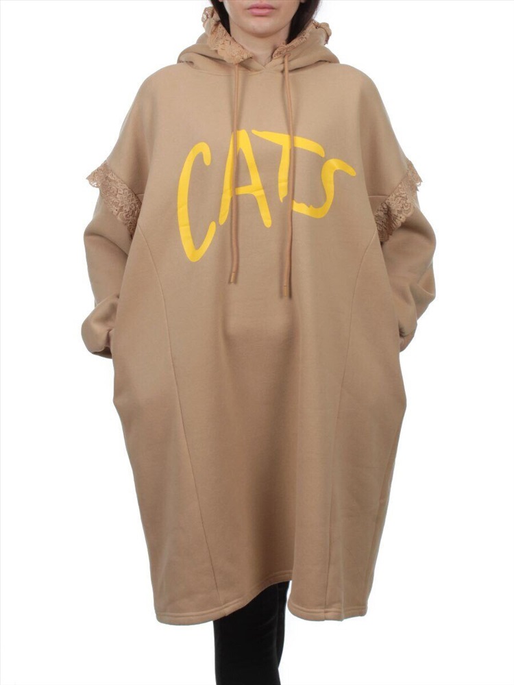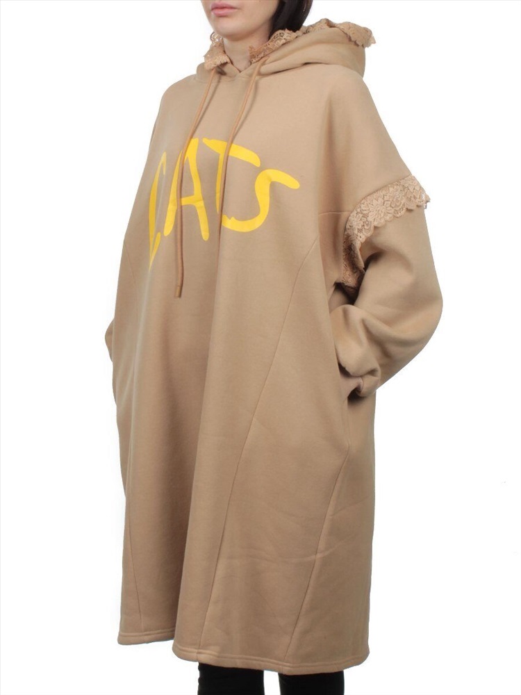 2247 BEIGE Толстовка-платье женская (85% хлопок, 10% полиэстер, 5% спандекс)
