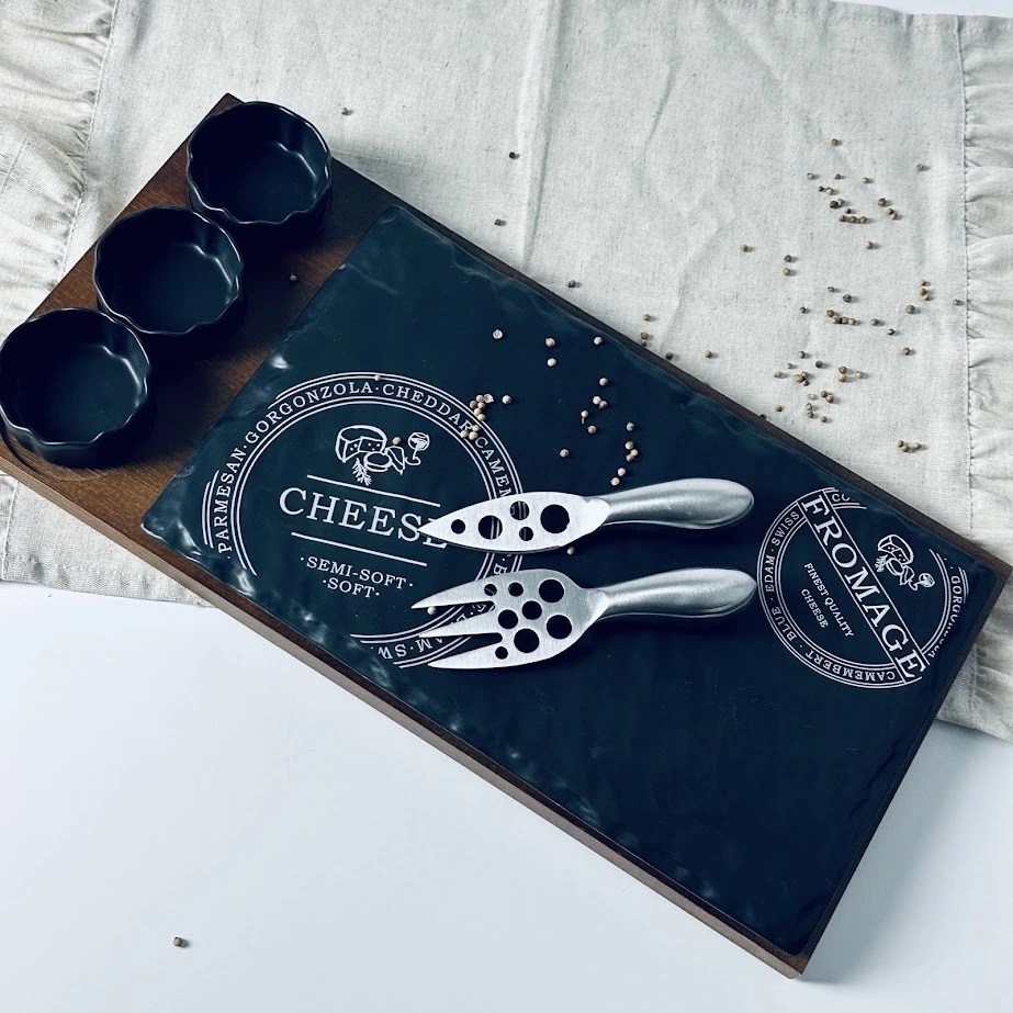 232-025 Сервировочная доска/блюдо для сыра с приборами 5пр. BLACKWOOD в под.уп.(х8)Фарфор