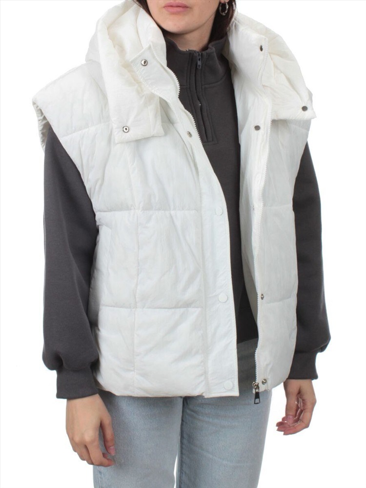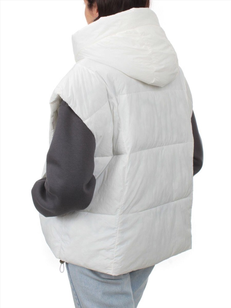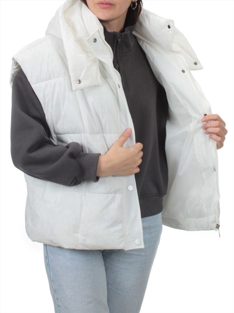 Кол-во в упаковке: 1 Жилет утепленный Модель сезона: осень-зима. Артикул: 24001 WHITE Фото сделано на модели размера 44/46 Рост модели 175 см., объем груди 90, талия 70, бедра 98. Витринный образец размера S — 46/48 российский: Модель свободного кроя, оверсайз. Центральная застежка на молнию Ветрозащитный клапан на кнопках Два втачных кармана спереди Капюшон несъемный Воротник стойка По низу эластичный шнурок Длина спины: 63 см Ширина спины: 54 см Объем груди: 108 см Объем талии: 118 см Длина плеча: 21 см Состав ткани: 100% полиэстер. Ткань легкая. Утеплитель современный, воздушный — 100 гр. холоффайбер. Размер указанный на жилете и соответствие российским стандартам: S — 46/48 российский M — 48/50 российский L — 50/52 российский XL — 52/54 российский Комментарии к товару