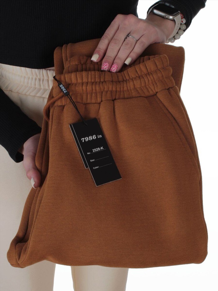 Кол-во в упаковке: 1 Брюки спортивные утепленные женские (85% хлопок, 10% полиэстер, 5% спандекс) Артикул: 2528-K BROWN Модель сезона: осень-зима. Дополнительная информация: Ткань плотная, внутри флис. Пояс на резинке с регулировочным шнурком. Два кармана спереди. Трикотажные манжеты с разрезами по низу штанин. Фото сделано на модели размера 44/46: Рост модели 170 см., объем груди 90, талия 70, бедра 95. Витринный образец размера L - 46/48 российский: Объем талии: 72 см. (тянется). Объем бедер: 114 см. Длина штанины по внутреннему шву: 72 см. Длина штанины по внешнему шву из под пояса: 96 см. Объем колена: 46 см. Ширина штанины по низу: 24 см. (тянется). Высота посадки спереди вместе с поясом: 33 см. Ширнина пояса: 5 см. Размеры указанные на изделии и соответствие российским стандартам: L - 46/48 российский XL - 48/50 российский Комментарии к товару