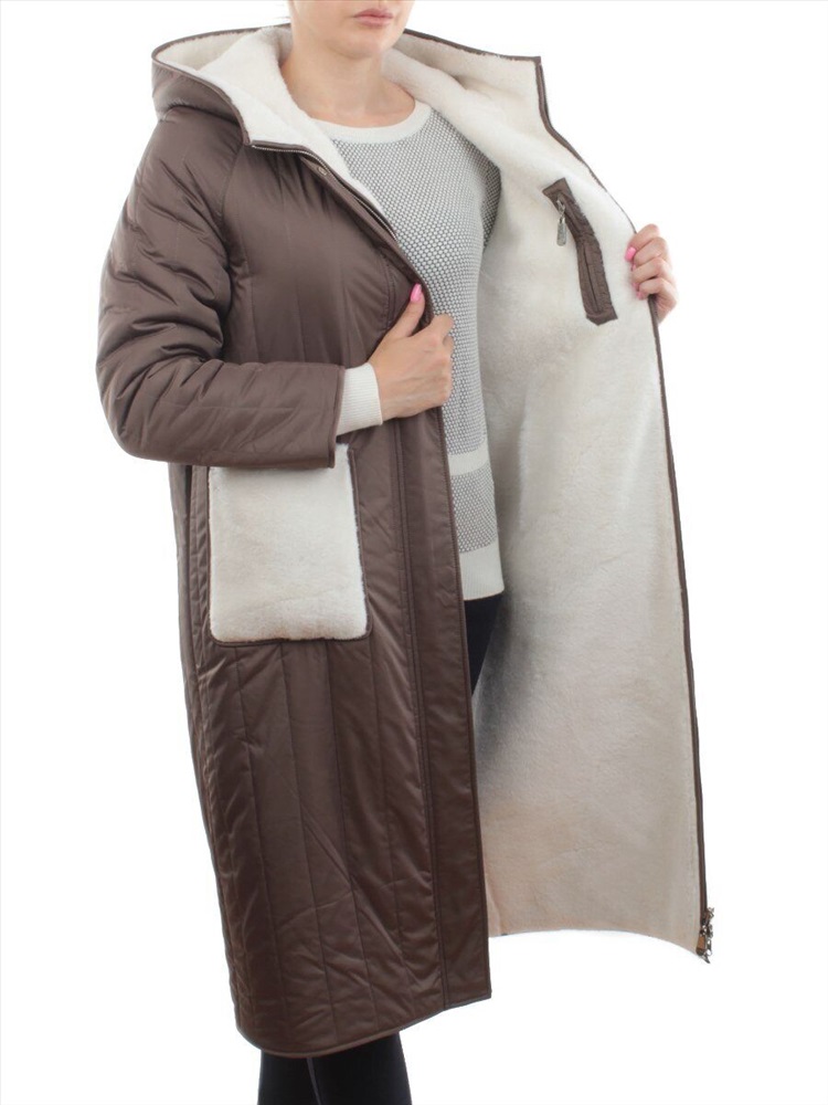 Кол-во в упаковке: 1 Пальто двухстороннее женское еврозима 100 гр. холлофайбер Артикул: 2639 DK. BEIGE Модель сезона: зима. Дополнительная информация: Модель двусторонняя. Центральная застежка на молнии. Ветрозащитный клапан на кнопках. Спереди два кармана. Капюшон несъемный. Мех искусственный. Пояс к комплекте. Фото сделано на модели размера 44/46 Рост модели 170 см., объем груди 90, талия 65, бедра 98. Витринный образец размера 48 российский: Длина спины: 108 см. Объем груди: 108 см Объем талии: 112 см Объем бедер: 118 см Длина плеча + рукав: 72 см. С одной стороны: 100% полиэстер. С другой стороны: искусственный мех. Утеплитель: 100 гр. холлофайбер. Размеры указанные на изделии и соответствие российским стандартам: 48 российский 50 российский 52 российский 54 российский 56 российский 58 российский Комментарии к товару