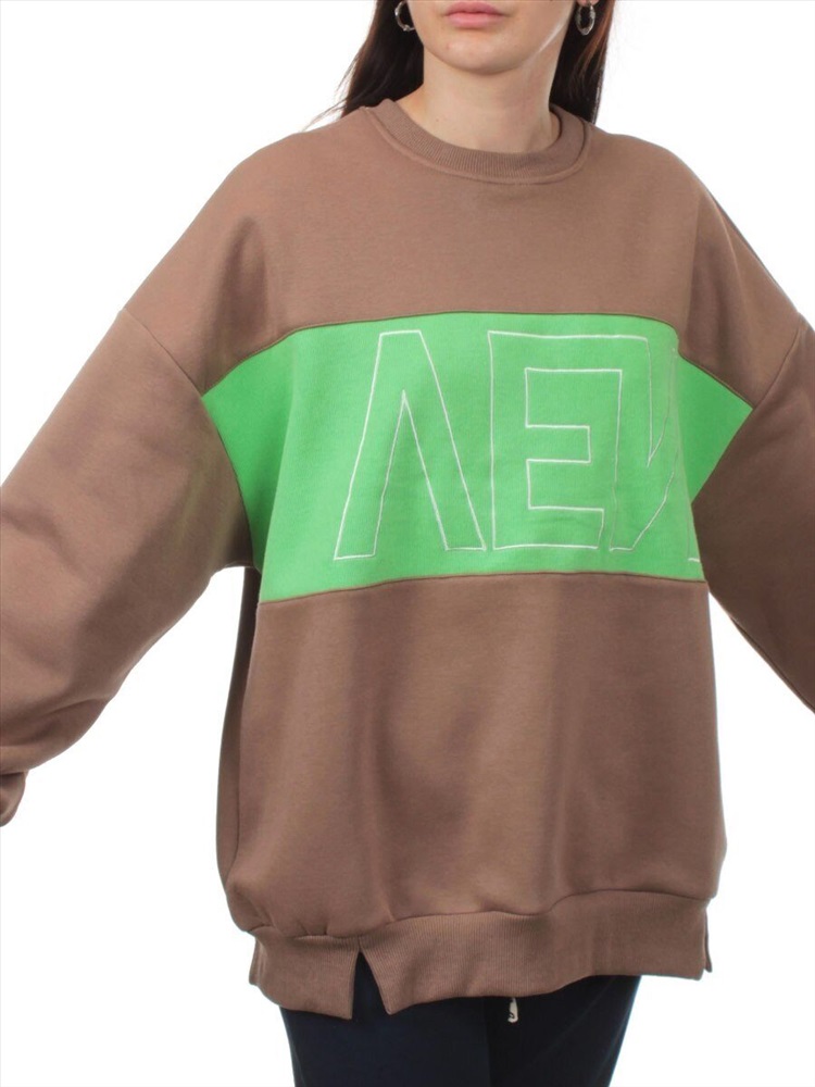2813 BROWN/GREEN Толстовка женская (95% хлопок, 5% спандекс)
