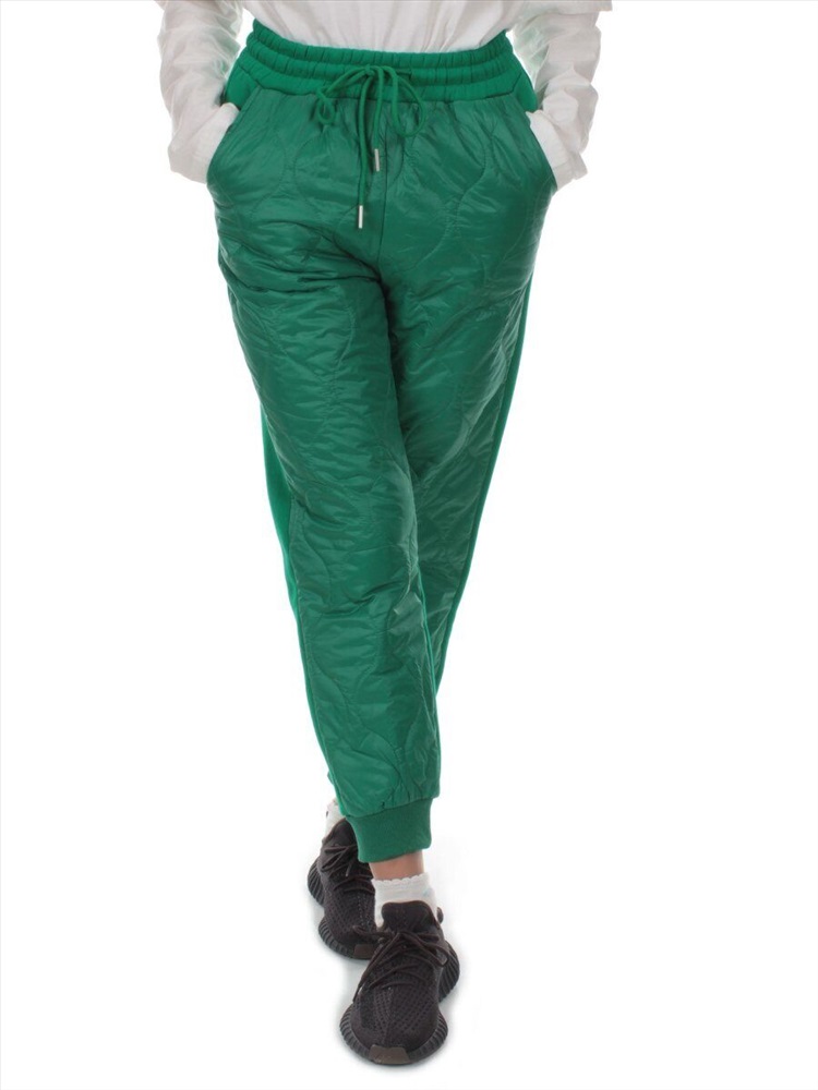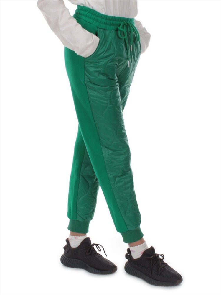 Кол-во в упаковке: 1 Брюки спортивные женские Артикул: 2847 GREEN Модель сезона: осень-зима Дополнительная информация: Модель на резинке, регулируется шнурком. Два кармана спереди. Сзади ткань плотная с начесом. Спереди ткань плащевая, простеганная, с синтепоном плотностью 50 гр. Фото сделано на модели размера 44/46 Рост модели 170 см., объем груди 90, талия 70, бедра 95. Витринный образец размера M - 44/46 российский Объем талии 70 см на резинке Длина штанины по внутреннему шву 73 см. Длина штанины по внешнему шву 97 см. Ширина штанины по низу 30 см. Высота посадки спереди 27 см. Размеры указанные на изделии и соответствие российским стандартам: M - 44/46 российский L - 46/48 российский XL - 48/50 российский Комментарии к товару