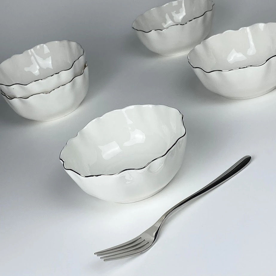 305-295 Набор из 6 салатников 15х6,5см ВАНЕССА СЕРЕБРО в под.уп.(х8)Фарфор