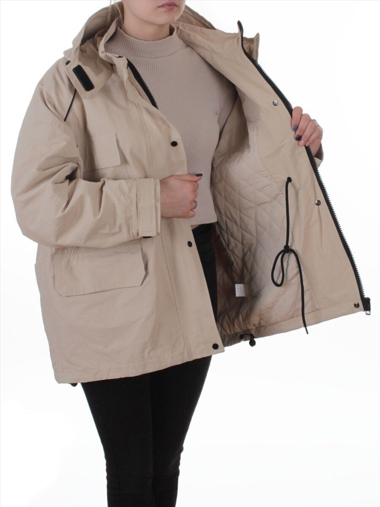 Кол-во в упаковке: 1 Куртка демисезонная женская (100 гр. холлофайбер) Артикул: 3092 BEIGE Дополнительная информация: Модель свободного кроя. Центральная застежка на молнию. Ветрозащитный клапан на кнопках. Два втачных кармана с клапанами спереди. Один нагрудный карман с клапаном. На спине кокетка. Капюшон несъемный с регулировочной резинкой и фиксаторами, застежка липучка.. Манжеты на липучке с возможностью регулировки. Регулировочный шнурок на талии по внутренней стороне. Регулировочная резинка с фиксаторами по низу куртки. Материал верха: 100% полиэстер. Подкладка: 100% хлопок. Утеплитель: 100 гр. холлофайбер. Фото сделано на модели размера 44/46: Рост модели 175 см., объем груди 90 см., талия 70 см., бедра 95 см. Витринный образец размера M - 50/52 российский: Длина спины: 77 см. Объем груди: 136 см. Объем талии: 134 см. Объем бедер 134 см. Длина плеча: 24 см. Длина рукава: 50 см. Размеры указанные на изделии и соответствие российским стандартам: M - 50/52 российский L - 52/54 российский XL - 54/56 российский Комментарии к товару