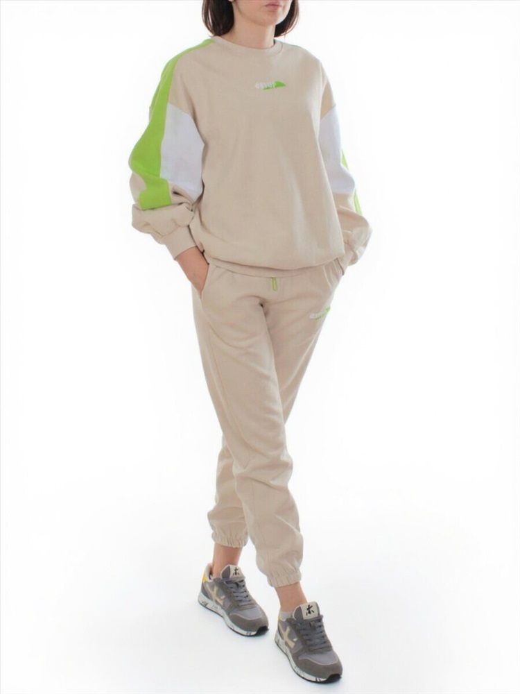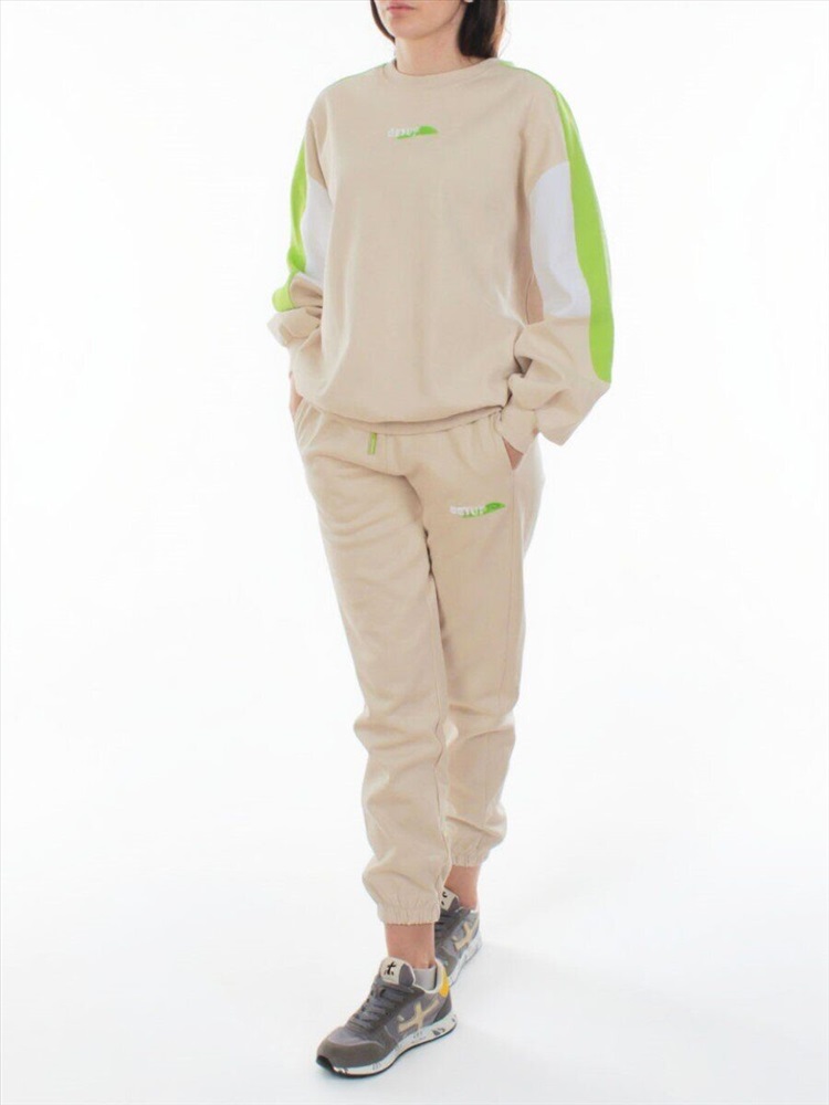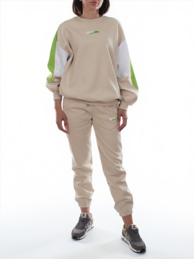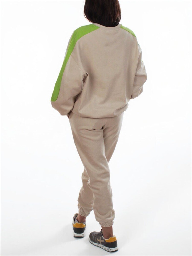 Кол-во в упаковке: 1 Костюм спортивный женский (95% хлопок, 5% эластан) Модель сезона: весна-осень. Артикул: 3160/3161 BEIGE/LT. GREEN Дополнительная информация: Ткань плотная без начеса. Свитшот: Горловина, рукава и и по низу трикотажные манжеты. Брюки: Два кармана спереди. Пояс на резинке с регулировочным шнурком, ширина 5 см. Низ штанины на резинке. Фото сделано на модели размера 44/46 Рост модели 175 см., объем груди 90, талия 72, бедра 96. Витринный образец размера M - 44/46 российский: Свитшот: Длина спины: 66 см. Объем груди: 126 см. Объем талии: 100 см. (тянется) Длина плеча до линии рукава: 21.5 см. Длина рукава от линии плеча 52 см. Брюки: Объем талии 68 см. (тянется) Объем бедер 104 см. Объем колена 44 см. Объем по нижней части штанины, в районе резинки 28 см. Длина внешней части штанины (замеры из под пояса) 95 см. Длина внутренней части штанины 72 см. Посадка (с поясом) 32 см. Состав ткани: 95% хлопок, 5% эластан. Размер указанный на спортивном костюме и соответствие российским стандартам: M - 44/46 российский L - 46/48 российский XL - 48/50 российский Комментарии к товару