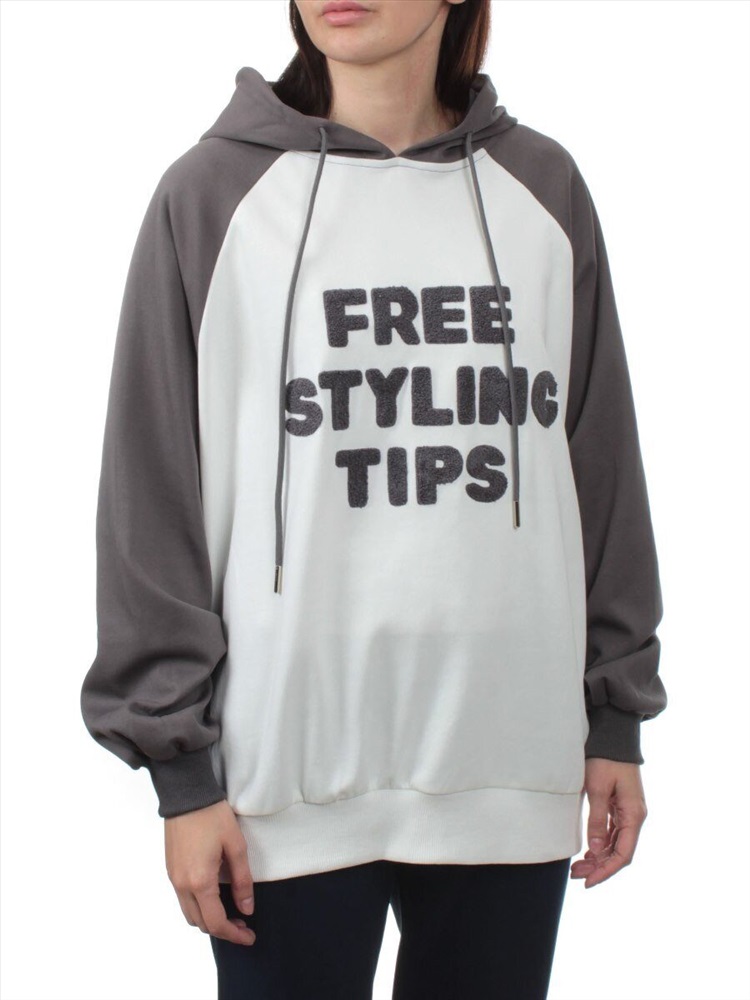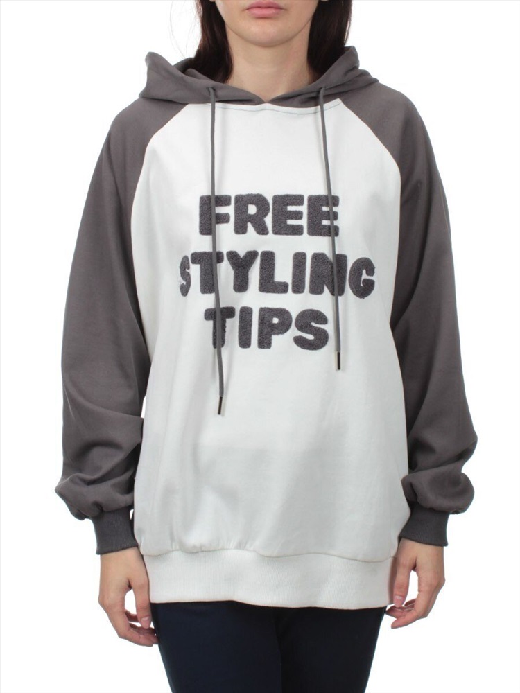 3255 GRAY/WHITE Худи женское (95% хлопок, 5% эластан)