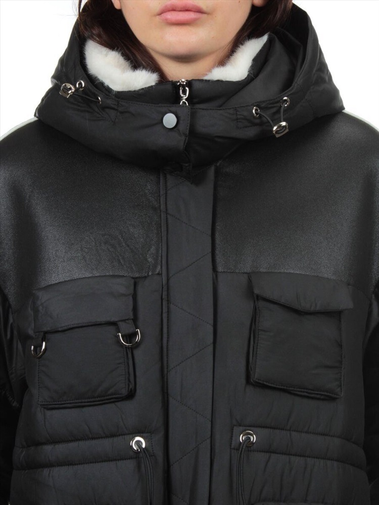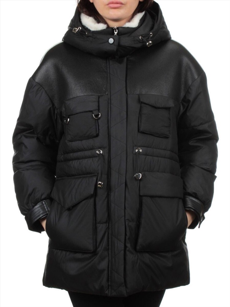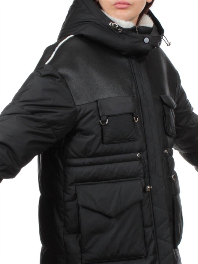 Кол-во в упаковке: 1 Куртка зимняя женская Артикул: 338-X01BLACK Дополнительная информация: Модель свободного кроя оверсайз Верх груди и верхняя часть спины искусственная дубленка Центральная застежка на молнию Ветрозащитный клапан на кнопках Два двойных кармана спереди Два нагрудных кармана Один внутренний карман Капюшон съемный с регулировочным шнурком Воротник стойка Утеплитель холлофайбер 200 гр. и искусственный мех. Фото сделано на модели размера 44/46 Рост модели 175 см., объем груди 90, талия 70, бедра 98. Витринный образец размера 44 российский: Длина спины: 79 см Объем груди: 108 см Объем талии: 112 см Длина плеча: 20 см Длина рукава: 54 см Размеры указанные на изделии и соответствие российским стандартам: 42 российский 44 российский 46 российский 48 российский 50 российский 52 российский Комментарии к товару