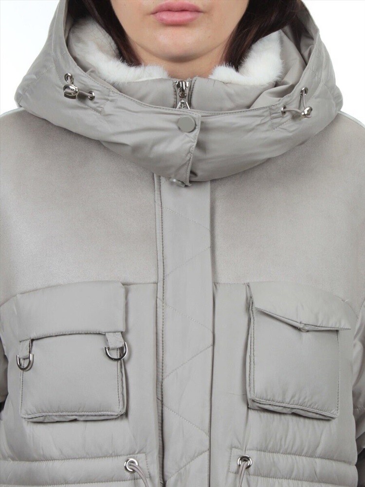 Кол-во в упаковке: 1 Куртка зимняя женская Артикул: 338-X44 BEIGE Дополнительная информация: Модель свободного кроя оверсайз Верх груди и верхняя часть спины искусственная дубленка Центральная застежка на молнию Ветрозащитный клапан на кнопках Два двойных кармана спереди Два нагрудных кармана Один внутренний карман Капюшон съемный с регулировочным шнурком Воротник стойка Утеплитель холлофайбер 200 гр. и искусственный мех. Фото сделано на модели размера 44/46 Рост модели 175 см., объем груди 90, талия 70, бедра 98. Витринный образец размера 44 российский: Длина спины: 79 см Объем груди: 108 см Объем талии: 112 см Длина плеча: 20 см Длина рукава: 54 см Размеры указанные на изделии и соответствие российским стандартам: 42 российский 44 российский 46 российский 48 российский 50 российский Комментарии к товару