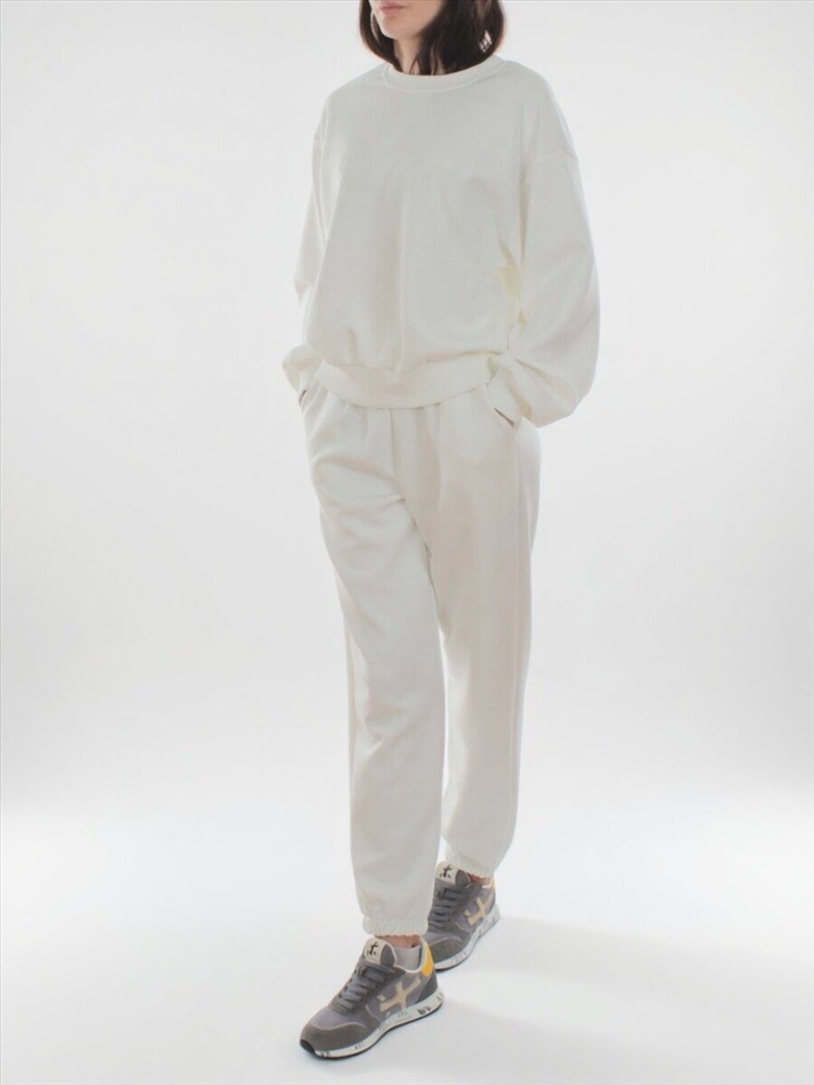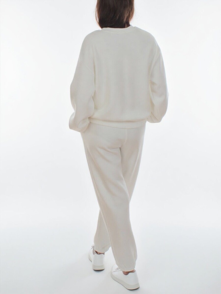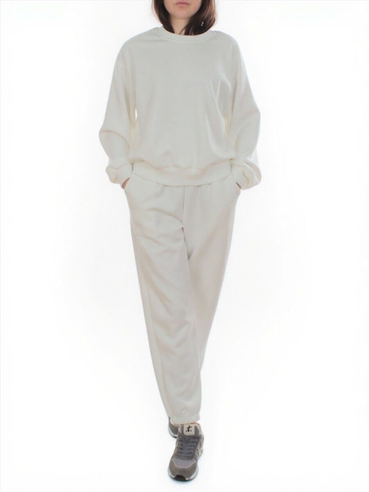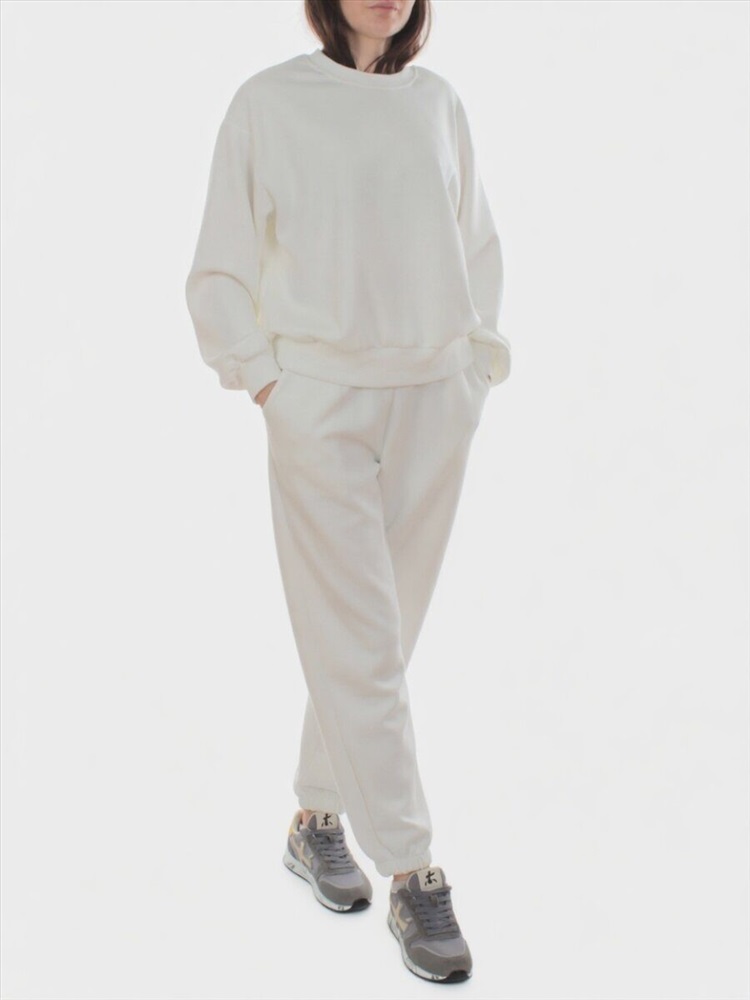 Кол-во в упаковке: 1 Костюм спортивный женский (95% хлопок, 5% эластан) Модель сезона: весна-осень. Артикул: 3402/3403 WHITE Дополнительная информация: Ткань плотная без начеса. Свитшот: Горловина, рукава и и по низу трикотажные манжеты. Брюки: Два кармана спереди. Пояс на резинке с регулировочным шнурком, ширина 5 см. Низ штанины на резинке. Фото сделано на модели размера 44/46 Рост модели 175 см., объем груди 90, талия 72, бедра 96. Витринный образец размера M - 44/46 российский: Свитшот: Длина спины: 56 см. Объем груди: 122 см. Объем талии: 96 см. (тянется) Длина плеча до линии рукава: 20 см. Длина рукава от линии плеча 57 см. Брюки: Объем талии 68 см. (тянется) Объем бедер 110 см. Объем колена 50 см. Объем по нижней части штанины, в районе резинки 30 см. Длина внешней части штанины (замеры из под пояса) 97 см. Длина внутренней части штанины 71 см. Посадка (с поясом) 32 см. Состав ткани: 95% хлопок, 5% эластан. Размер указанный на спортивном костюме и соответствие российским стандартам: M - 44/46 российский L - 46/48 российский XL - 48/50 российский Комментарии к товару