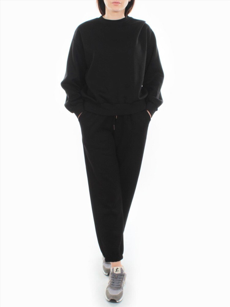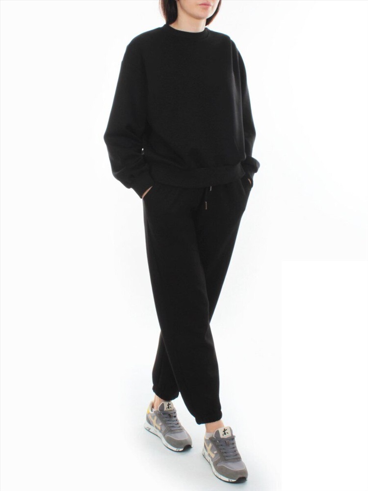 Кол-во в упаковке: 1 Костюм спортивный женский (95% хлопок, 5% эластан) Модель сезона: весна-осень. Артикул: 3404/3405 BLACK Дополнительная информация: Ткань плотная без начеса. Свитшот: Горловина, рукава и и по низу трикотажные манжеты. Брюки: Два кармана спереди. Пояс на резинке с регулировочным шнурком, ширина 5 см. Низ штанины на резинке. Фото сделано на модели размера 44/46 Рост модели 175 см., объем груди 90, талия 72, бедра 96. Витринный образец размера M - 44/46 российский: Свитшот: Длина спины: 55 см. Объем груди: 122 см. Объем талии: 94 см. (тянется) Длина плеча до линии рукава: 18.5 см. Длина рукава от линии плеча 56 см. Брюки: Объем талии 66 см. (тянется) Объем бедер 110 см. Объем колена 48 см. Объем по нижней части штанины, в районе резинки 28 см. Длина внешней части штанины (замеры из под пояса) 95 см. Длина внутренней части штанины 69 см. Посадка (с поясом) 32 см. Состав ткани: 95% хлопок, 5% эластан. Размер указанный на спортивном костюме и соответствие российским стандартам: M - 44/46 российский L - 46/48 российский XL - 48/50 российский Комментарии к товару