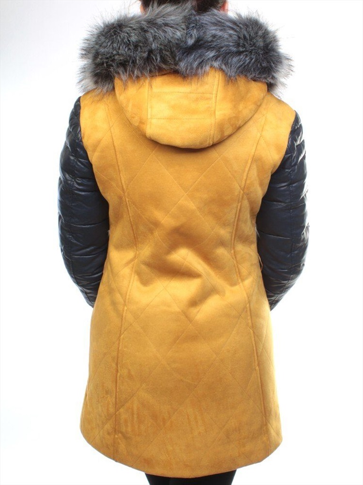 Кол-во в упаковке: 1 Парка женская зимняя (150 гр синтепон, искусственный мех) Модель сезона: зима. Артикул: 5137 Теплая парка с высоким воротником-стойкой и застежкой на молнию. Стильная модель с несъемным капюшоном с мягкой подкладкой и опушкой из искусственного меха. Ширину капюшона можно регулировать кулисками. Приталенный крой позволит чувствовать себя легко и комфортно в любой ситуации! По бокам прорезные карманы с клапанами с оригинальным оформлением. Эластичные манжеты с дополнительной защитой рук от ветра и снега. Линия талии подчеркнута контрастным поясом. Все швы укреплены с внутренней стороны для дополнительной защиты от холода. Парка согреет в прохладную погоду и подчеркнет неповторимый стиль своей обладательницы! Дополнительная информация: Модель стеганая. Центральная застежка на молнии. Ветрозащитный клапан. Два кармана спереди, один внутренний карман. Рукава модели из эко-кожи. Трикотажный манжет изнутри рукава. Капюшон (несъемный), искусственный мех (съемный) Внутренняя часть капюшона отделана искусственным мехом. Пояс. Фото сделано на модели размера 44 Рост модели 167 см., объем груди 90, талия 70, бедра 95. Витринный образец размера S (42 российский) Длина спины: 80 см. Ширина спины: 44 см. Длина рукава: 63 см. Длина плеча: 10 см. Ширина меховой опушки по мездре: 17 см. Материал: верха искусственная замша. Подкладка: 100% полиэстер. Утеплитель: синтепон 150 гр. Размеры указанные на изделии и соответствие российским стандартам: S - 42 российский M - 44 российский L - 46 российский XL - 48 российский 2XL - 50 российский Комментарии к товару
