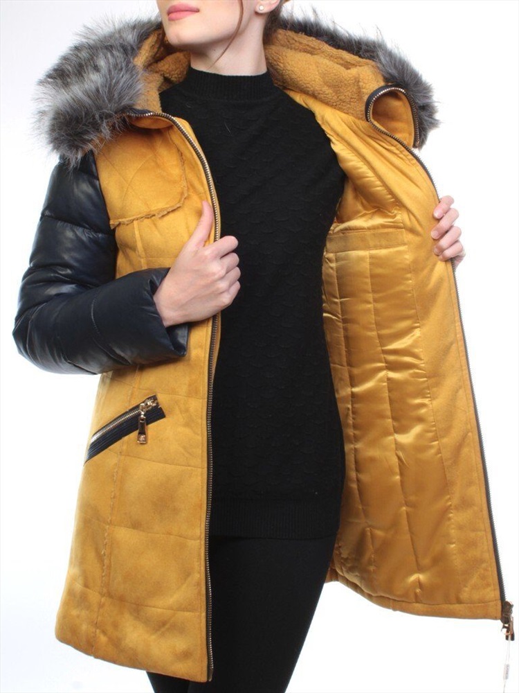 Кол-во в упаковке: 1 Парка женская зимняя (150 гр синтепон, искусственный мех) Модель сезона: зима. Артикул: 5157 Для тренировок и пробежек на свежем воздухе незаменима стеганая парка с объемным капюшоном с опушкой из искусственного меха. Мягкая фланелевая подкладка придает парке дополнительный комфорт. Модель застегивается на молнию по всей длине. Красивый стеганый узор. Объемный воротник. Втачные карманы на молниях. В талии эластичный пояс. Легкий блеск материала и пушистый искусственный мех на капюшоне придают модели элегантный вид, а трендовая прострочка кубиками добавляет спортивные нотки. Дополнительная информация: Модель стеганая. Центральная застежка на молнии. Ветрозащитный клапан. Два кармана спереди, один внутренний карман. Рукава модели из эко-кожи. Трикотажный манжет изнутри рукава. Капюшон (несъемный), искусственный мех (съемный) Внутренняя часть капюшона отделана искусственным мехом. Пояс. Фото сделано на модели размера 44 Рост модели 167 см., объем груди 90, талия 70, бедра 95. Витринный образец размера M (44 российский) Длина спины: 80 см. Ширина спины: 42 см. Длина рукава: 63 см. Длина плеча: 10 см. Ширина меховой опушки по мездре: 17 см. Материал: верха искусственная замша. Подкладка: 100% полиэстер. Утеплитель: синтепон 150 гр. Размеры указанные на изделии и соответствие российским стандартам: S - 42 российский M - 44 российский L - 46 российский XL - 48 российский 2XL - 50 российский Комментарии к товару