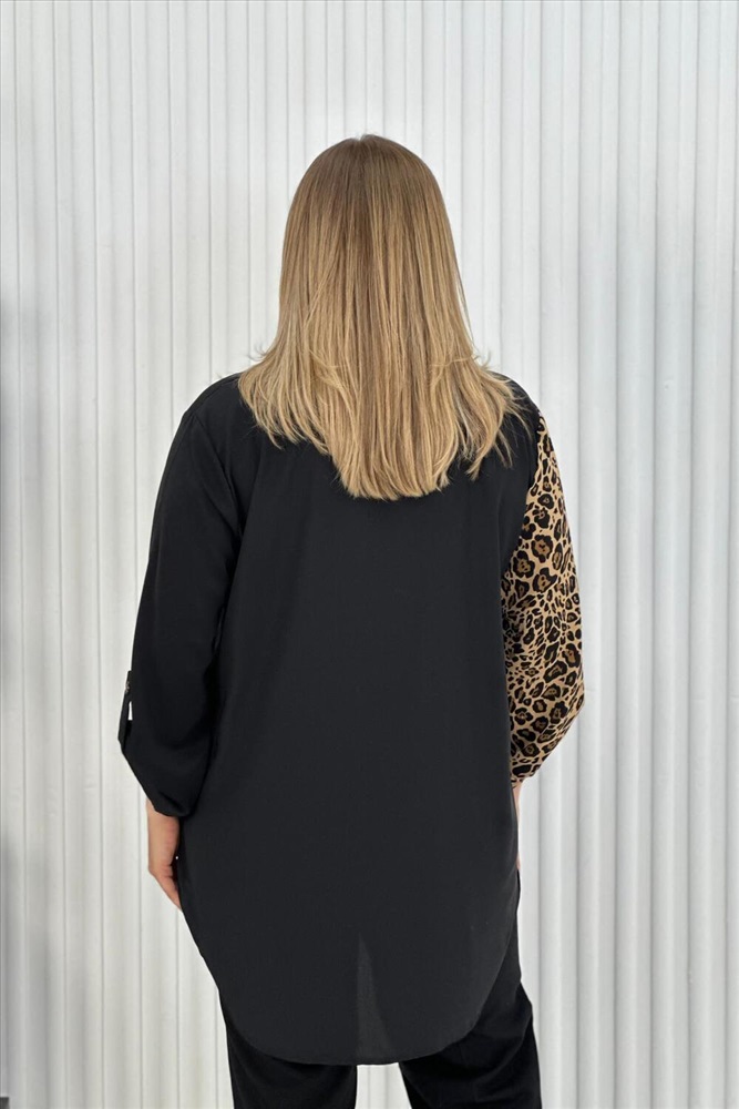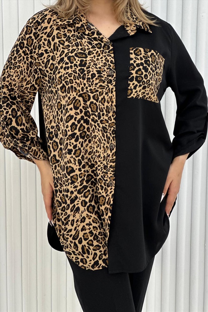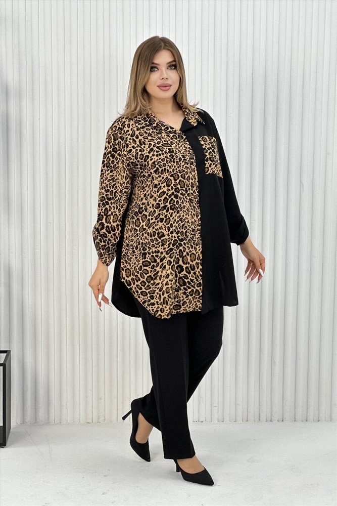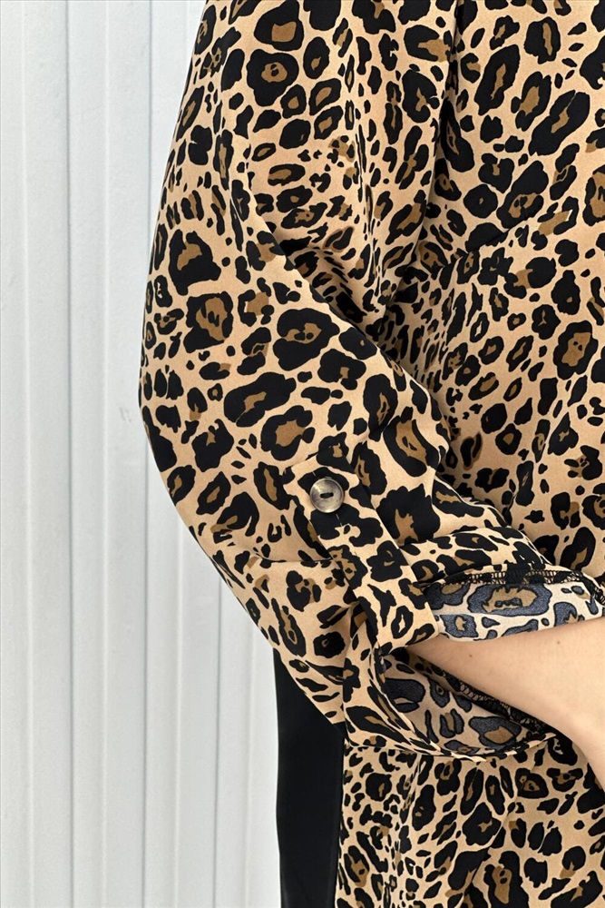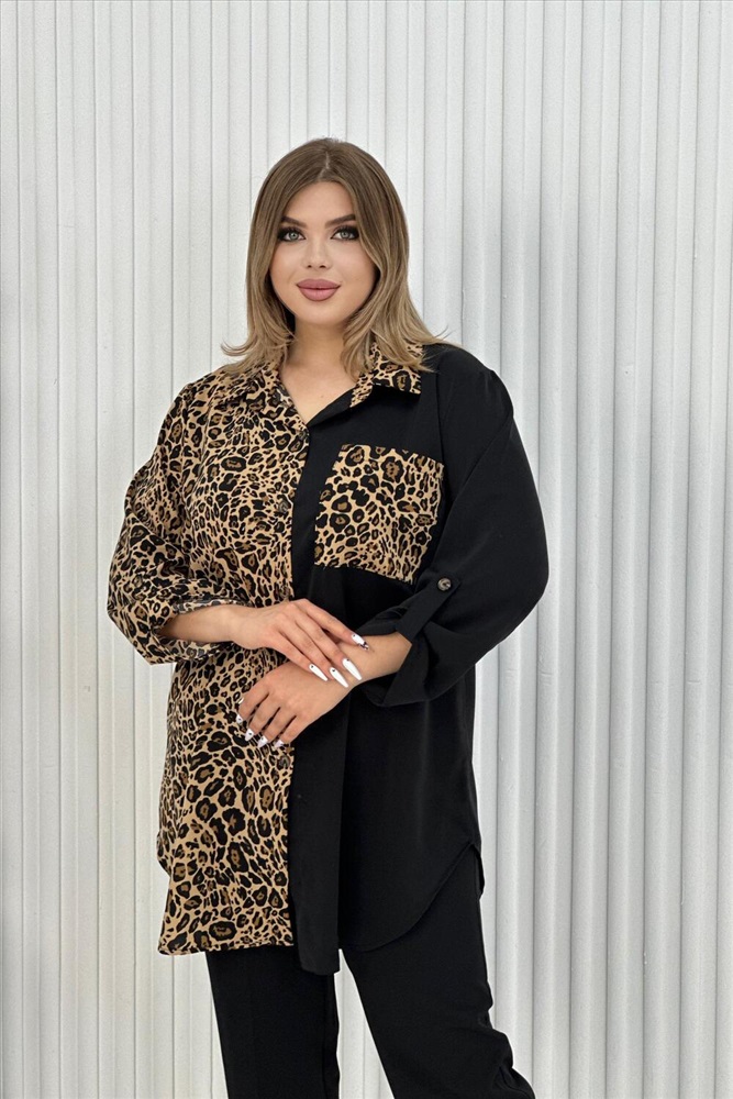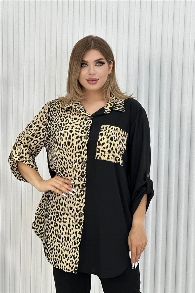 Элегантная женская туника с трендовым узором леопард. Блузка выполнена из легкой, но плотной ткани, воротник рубашечного типа, на передней полочке карман, на пуговицах, рукава с манжетом, также на пуговицах. Данная модель идеально подойдет для любых мероприятий, выхода на работу и просто на прогулку.